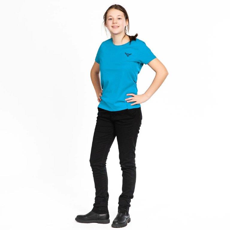 Een meisjes T-shirt voor jouw avAnt-schooluniform. Voelt zacht aan en aangenaam om dragen. Combineer je garderobe met een wit, zwart of azuur blauwe T-shirt. 100 % katoen,