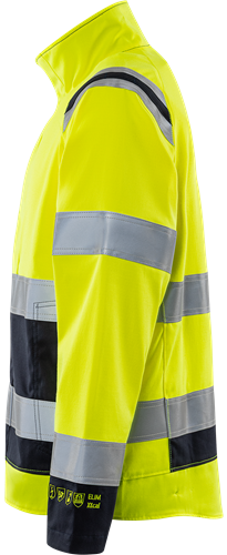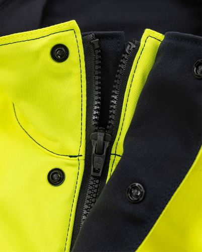 Multinorm stretchjack gemaakt van lichtgewicht en duurzaam materiaal met inherente vlambescherming. Uitzonderlijk zacht en comfortabel tegen vlammen beschermd high vis jack dat superieure bewegingsvrijheid en een hoog beschermingsniveau biedt. Goedgekeurd voor industriële was en vrij van PFAS. Stretchmateriaal / Waterafstotend / Opening met rits tot bovenkant kraag en verborgen drukknoopsluiting / Borstzak met klep en verborgen drukknoopsluiting, met D-ring aan binnenkant / 2 lussen voor communicatieapparatuur op borst / Lussen op schouders om armlet te bevestigen / 2 voorzakken met verborgen ritssluiting / Verstelbare mouwuiteinden met verborgen drukknoopsluiting / Verstelbare onderkant met verborgen knopen / Verlengde rug / Metaalvrij / PFAS-vrij / Goedgekeurd volgens EN 61482-1-2 APC 1, EN 61482-1-1 ELIM: 8 cal/cm² (opgenomen in vlambooggecertificeerde kledingcombinaties), EN ISO 11612 A1 B1 C1 F1, EN 1149-5, EN ISO 11611 A1 klasse 1 (opgenomen in vlamboog- en laskledingcombinaties), EN 13034 Type PB [6] en EN ISO 20471 klasse 3 / Gecertificeerd na 50 wasbeurten / Wasgoed getest volgens ISO 15797 / OEKO-TEX® gecertificeerd. Stretch 45% modacryl, 34% katoen, 17% polyamide, 2% elastaan, 2% antistatische vezel Inherente vlambescherming PFAS-vrij 265 g/m²