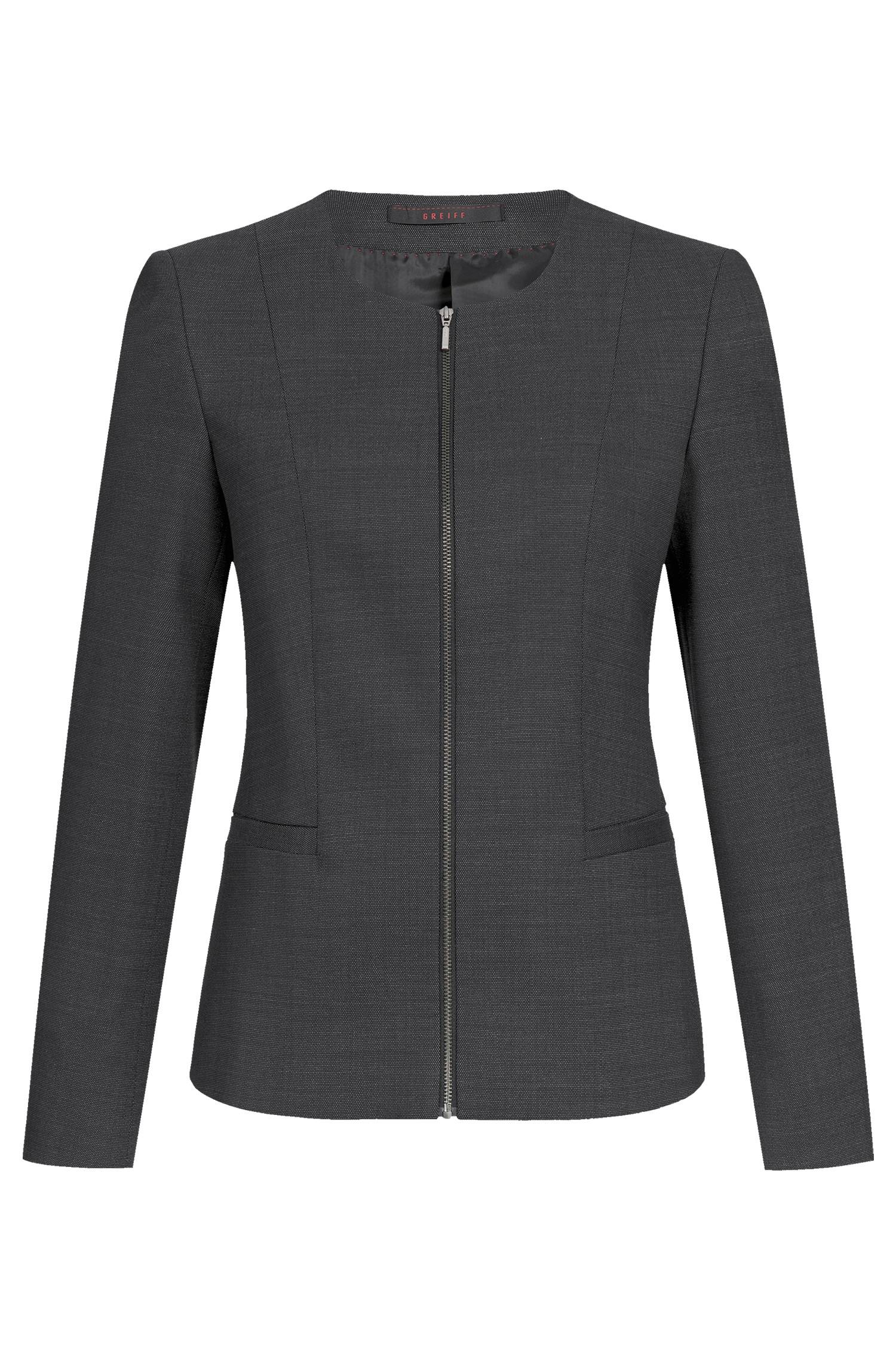 Dames korte blazer SF Modern 37.5 Slim Fit, ronde hals, ritssluiting, 2 zakken in de naad, 1 binnenzak met ritssluiting, AMF-stitching, peplum, ruglengte 51 cm | maat 38. ·Doek: 52% polyester 46% Scheerwol 2% Elastaan, 190 g/m² Binnenvoering: 100% polyester MAAT: 32 – 42