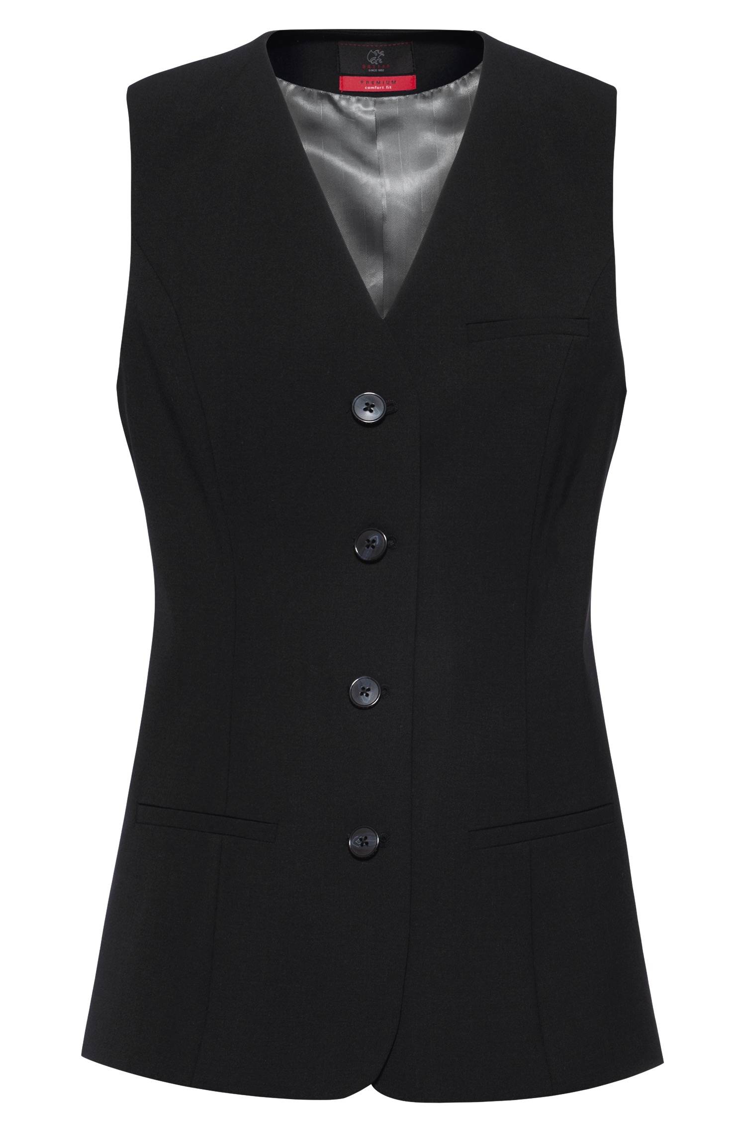 Dames gilet RF Modern 37.5 Regular fit, 4 knoops, 2 paspelzakken, 1 borstzak met paspel, AMF-stitching, korte zijsplit, stoffen rug, ruglengte 52 cm | maat 38. ·Doek: 52% polyester 46% Scheerwol 2% Elastaan, 190 g/m² Binnenvoering: 100% polyester MAAT: 32 – 54