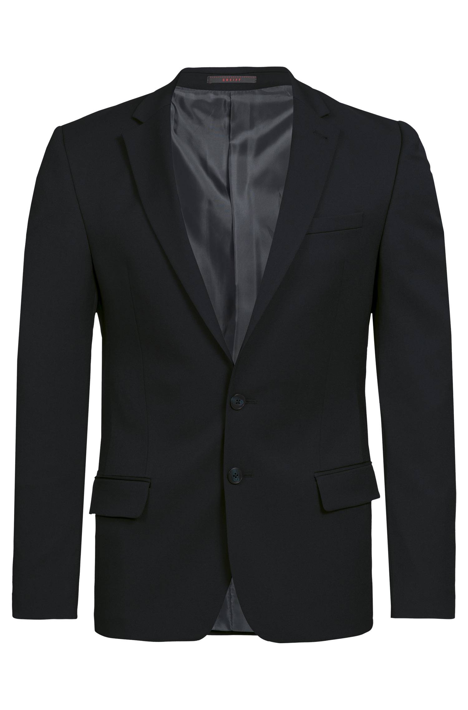 Heren colbert SF Modern 37.5 Slim Fit, 2 knoops, puntig revers, 2 klepzakken, 1 borstzak met paspel, 3 binnenzakken, AMF-stitching, rugsplit, half gevoerd, ruglengte 73 cm | maat 50. ·Doek: 52% polyester 46% Scheerwol 2% Elastaan, 190 g/m² Binnenvoering: 100% polyester MAAT: 42 – 54, 90 – 106