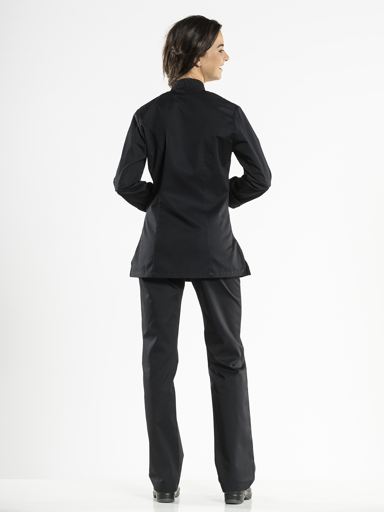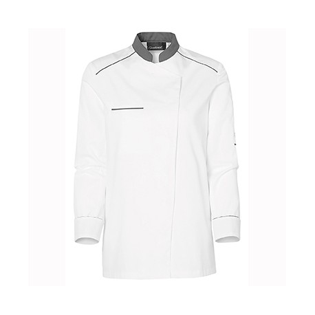 De Lady Poco maakt deel uit van onze BSX-collectie en is ook een echte ‘basic’ koksbuis. Het model is traditioneel en herkenbaar, maar uiteraard wel modern en getailleerd. De stof is praktisch, voelt prettig aan en afgewerkt met zichtbare metalen RVS drukknopen. De Lady Poco is een uitstekende allrounder. 67%PL/33%CO