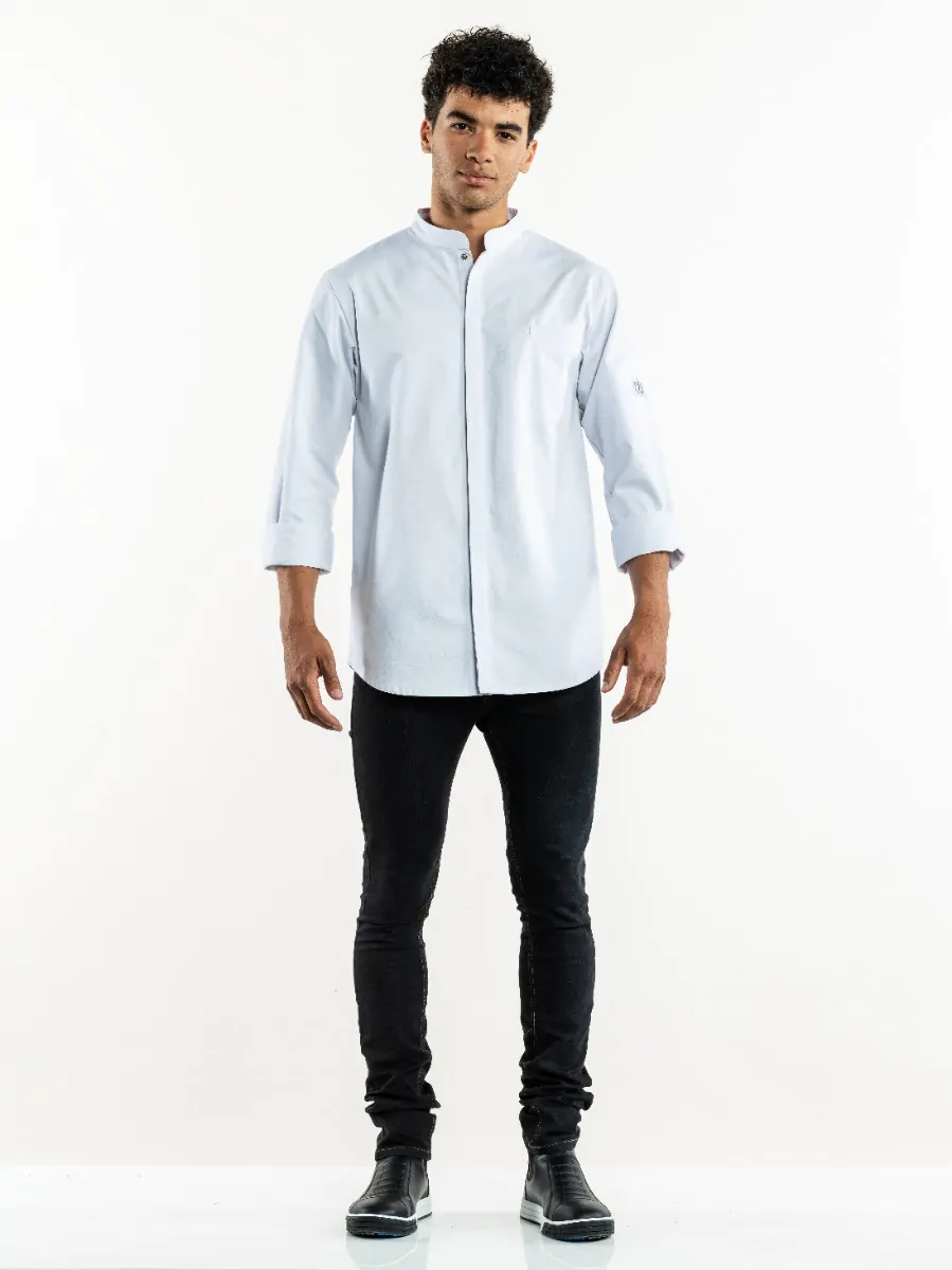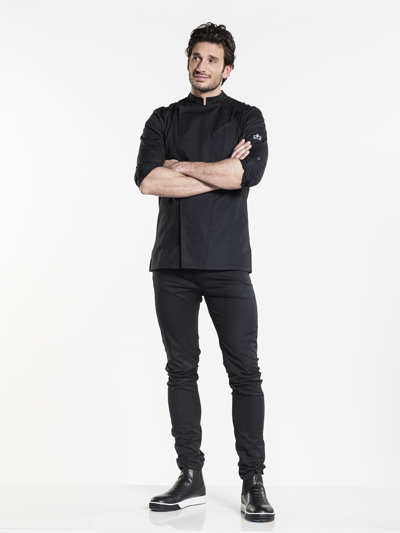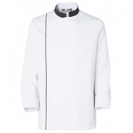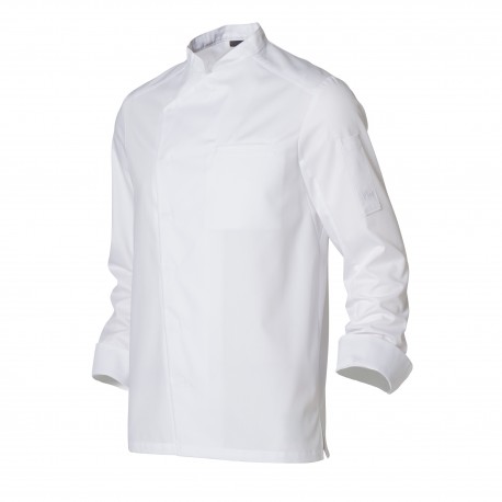 De Bujutsu doet het allemaal nét even anders. Het is een speelse, eigentijdse jas met karakter. In tegenstelling tot gewone koksbuizen trek je deze jas over je hoofd aan. Het is de asymmetrische borstzak die de Bujutsu lekker dwars maakt. De groene kleur is uniek in de keuken en zal zeker indruk maken. 50%PL/50%CO