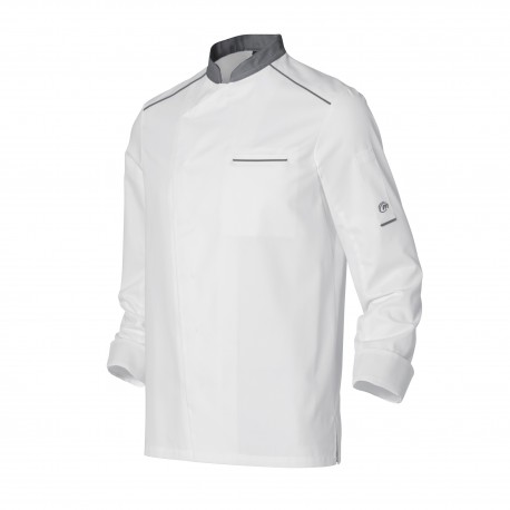 Heren Koksbuis met paspel RF Regular fit, verdekte drukknopen, contrasterende paspels, Armzak met logo, ventilatiegaatjes, weense naden in voor- en achterpand. ·Doek: 49% Katoen 49% polyester 2% Elastolefine, 200 g/m² MAAT: XS – 3XL