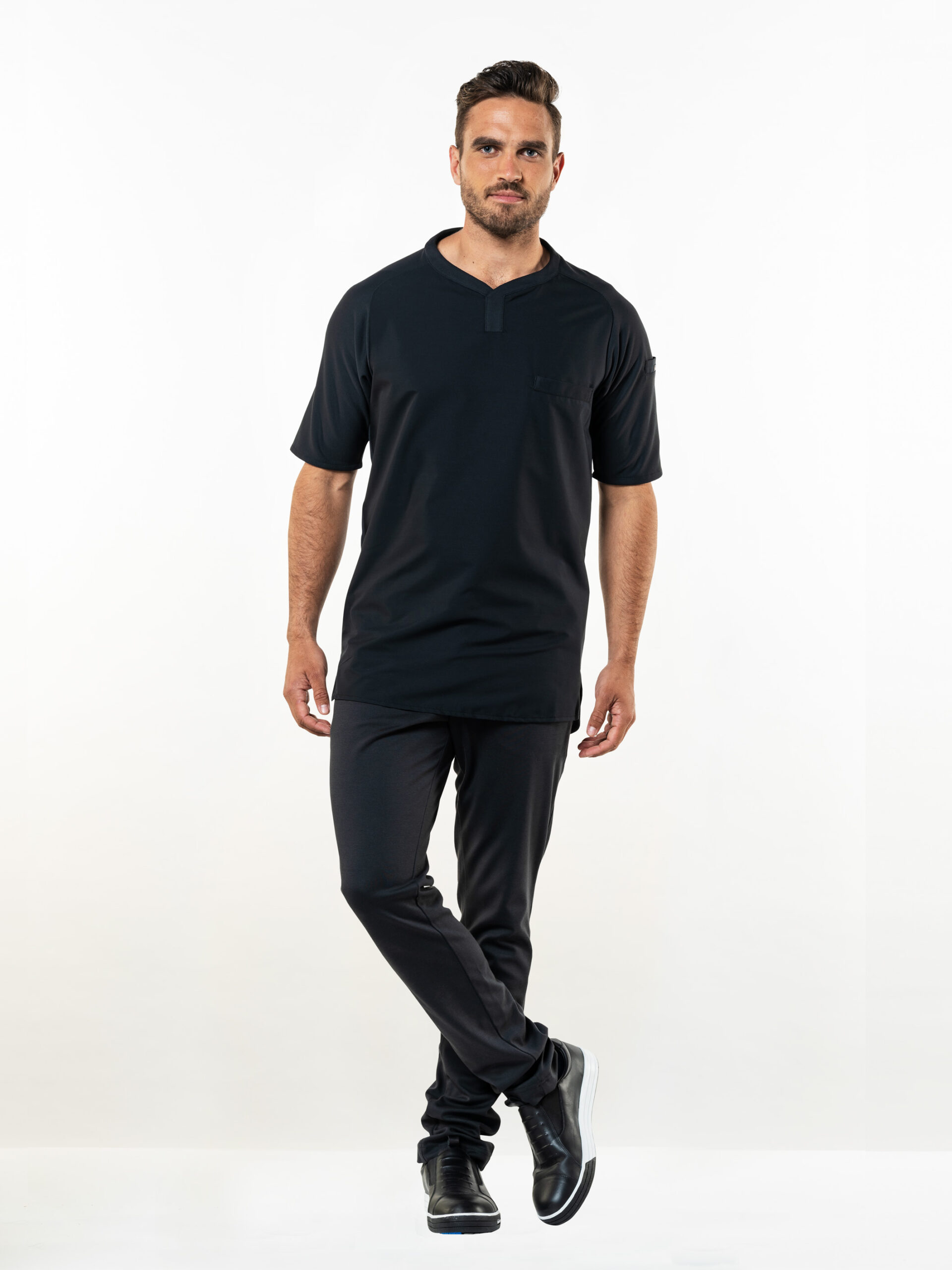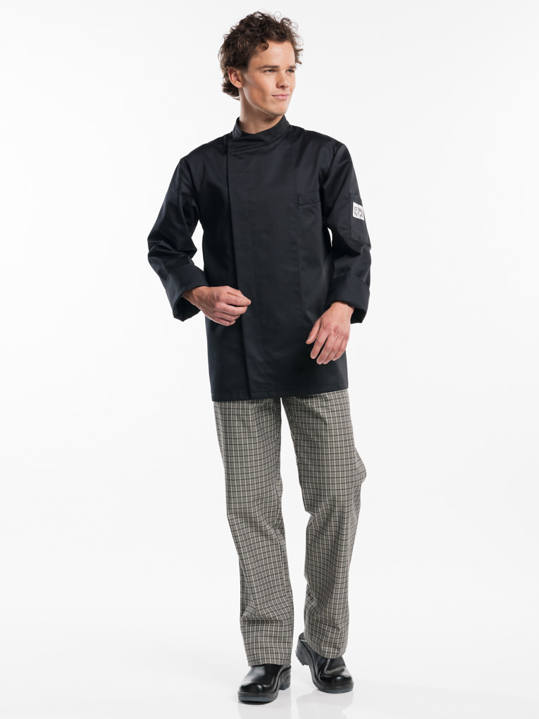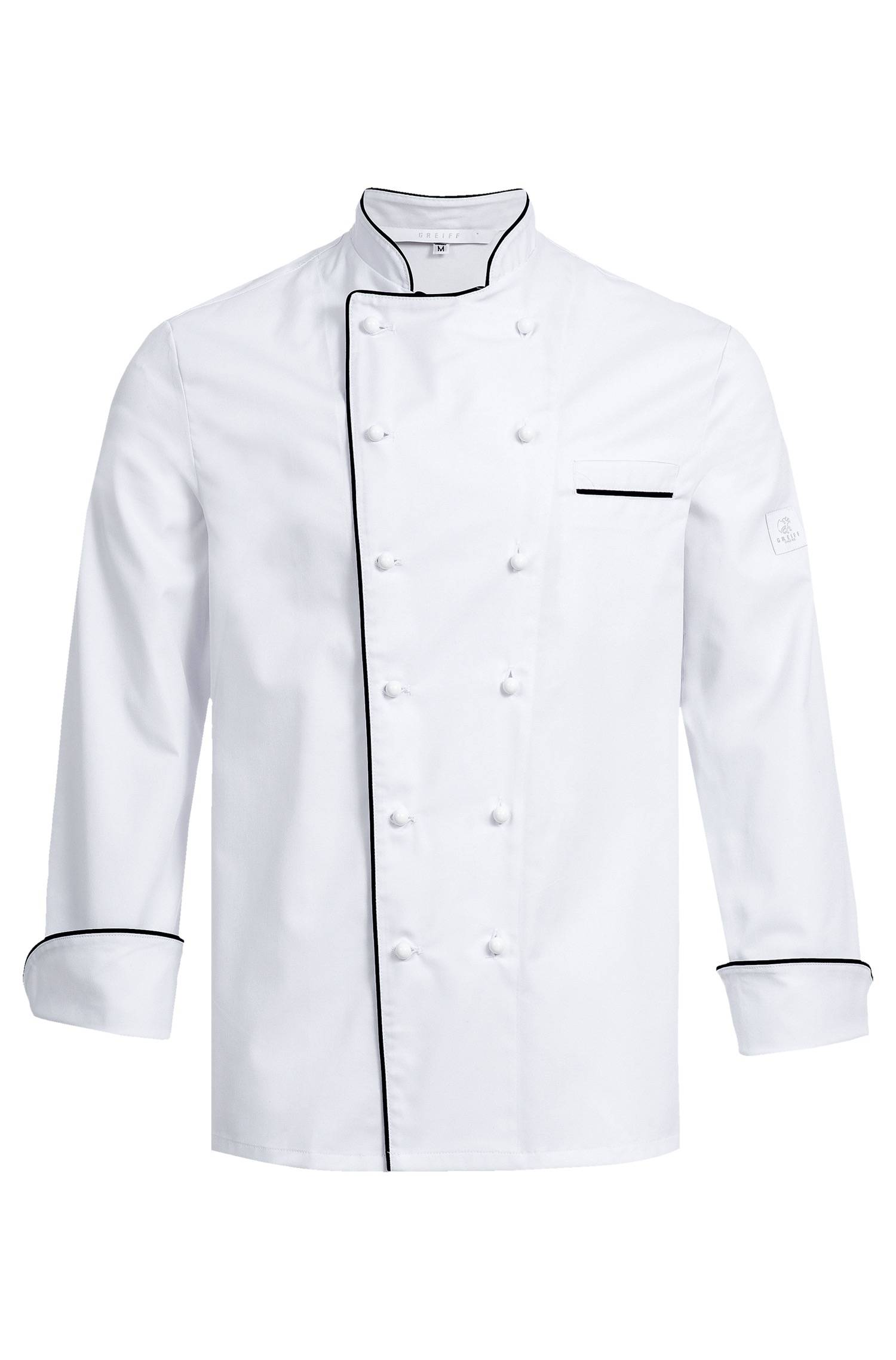 Het Ideal witte keukenjack voor heren is een horecajack van katoen/polyester met twee rijen knopen.