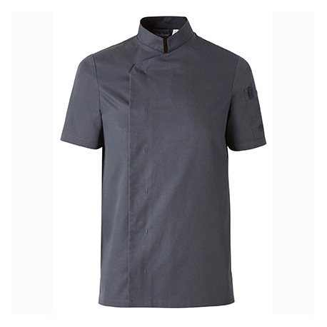 De fijne combinatie van de geweven stof, tricot achterkant en mouwen geeft dit shirt een classy look met een hoog werkcomfort. Het shirt heeft een borstzakje en een lus achter in de nek houdt een schort mooi op zijn plek. Kies voor stoer, elegant of koel met de verschillende beschikbare kleuren. De variant met korte mouw draagt zowel heerlijk in de keuken als in de bediening. 50%PL/26%CO/24%PLT400