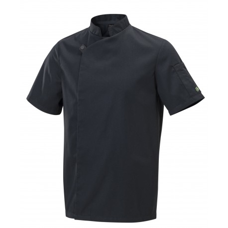 De fijne combinatie van de geweven stof, tricot achterkant en mouwen geeft dit shirt een classy look met een hoog werkcomfort. Het shirt heeft een borstzakje en een lus achter in de nek houdt een schort mooi op zijn plek. Kies voor stoer, elegant of koel met de verschillende beschikbare kleuren. De variant met korte mouw draagt zowel heerlijk in de keuken als in de bediening. 70%CO/30%PL