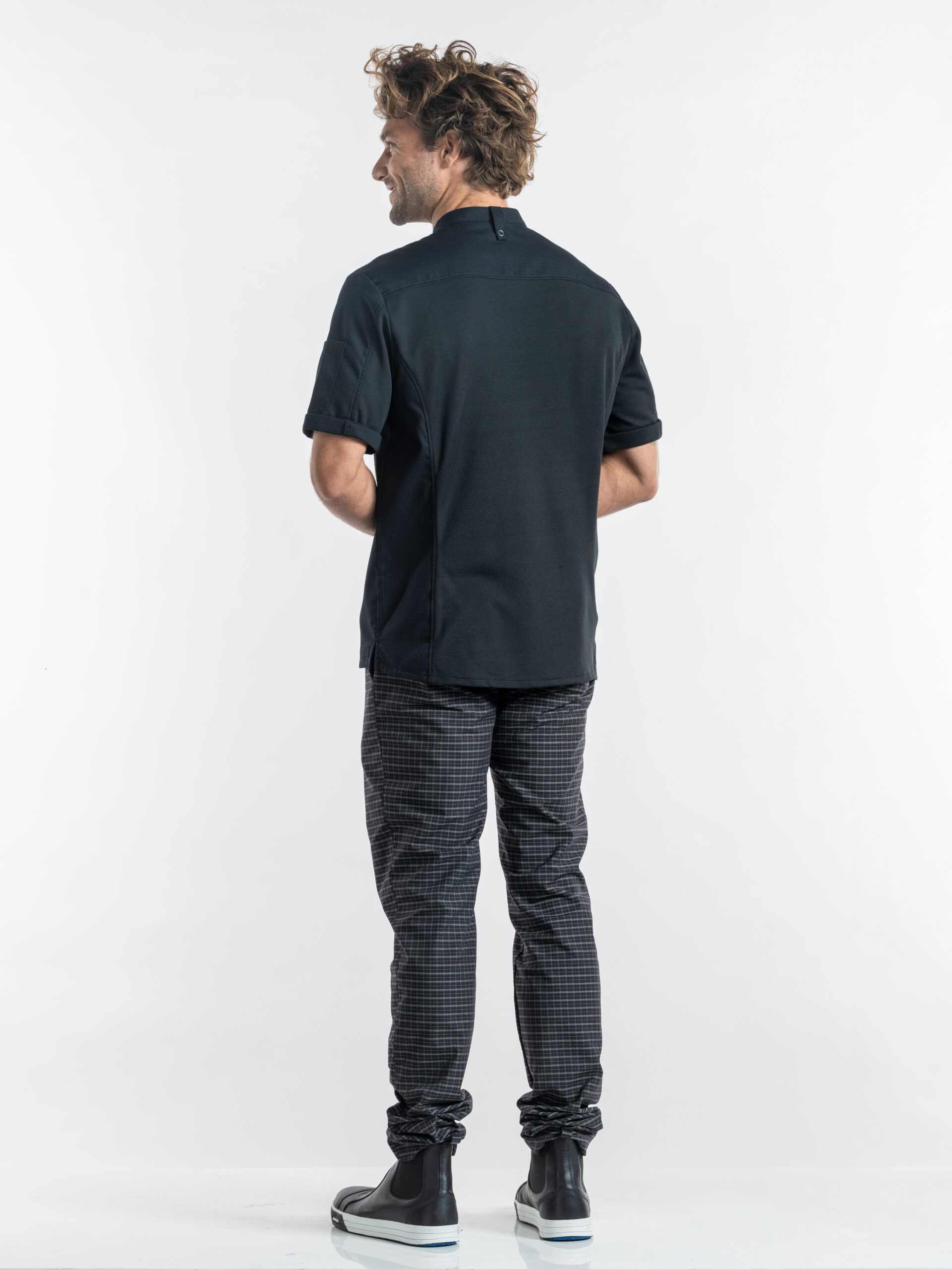 Ontdek stijl en veelzijdigheid met dit verfijnde shirt, geschikt voor het hele team, De aangesloten snit en de korte mouwen, met vaste omgeslagen zoom, creëren een eigentijdse uitstraling, De stretchstof in het achterpand en de mouwen zorgt voor veel comfort gedurende de hele dag, Opvallend zijn de contrasterende knopen, Of je nu kiest voor een elegante pantalon voor de bediening of je combineert het met een schort in de keuken, dit shirt voegt moeiteloos stijl toe aan elke professionele setting, 67%PL/33%CO