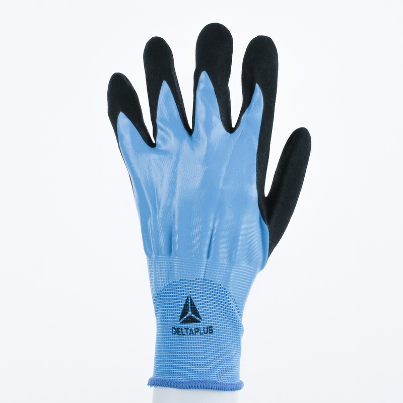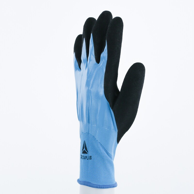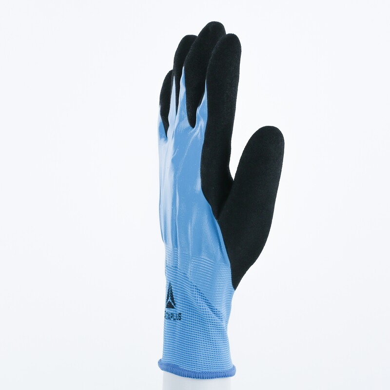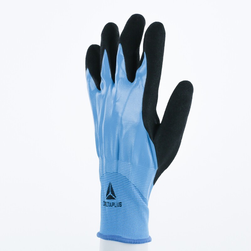 Mechanische handschoen, waterdicht, voor finesse en grip in olieachtige omgevingen. Ondersteuning : Gebreid – Polyamide | Coating : Dubbellaags nitril – Volledig coating, behalve de pols | Jauge : 15 Duurzaamheid: Hoge coating verlengt de levensduur van de handschoen en zorgt voor een zeer goede bescherming van de hand | Prestaties: Door de nitrilcoating hebben mensen die in olieachtige/vette omgevingen werken een uitstekende grip op de gehanteerde voorwerpen. | Hygiëne: Nitril maakt een totale afwezigheid van het risico op allergieën voor gebruikers mogelijk | Makkelijk te gebruiken: Perfecte pasvorm waardoor gebruikers geen ongemak in de pols voelen tijdens langdurig gebruik EN 388 : 3121X