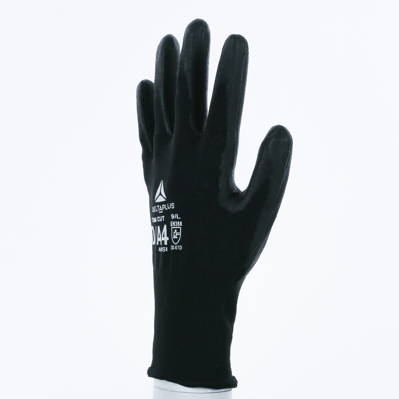 Snijbeschermingshandschoen klasse D met elektrostatische eigenschappen en zeer goed vakmanschap, ideaal in droge omgevingen. Ondersteuning : Gebreid – DELTAnocut – Roestvrijstalen vezel | Coating : PU – Palm coating | Jauge : 18 Duurzaamheid: Milieuvriendelijk dankzij de oplosmiddelvrije coating | Prestaties: Grote lichtheid voor optimale behendigheid. De polyurethaancoating zorgt voor een goede grip dankzij de antislipfunctie.. Hoge elektrostatische afvoereigenschappen om het risico op vonken te verminderen | Hygiëne: Siliconenvrij/Latexvrij/DMF-vrij om het risico op allergieën te verminderen zonder sporen achter te laten op de componenten | Compatibiliteit: Compatibel met touchscreens | Makkelijk te gebruiken: Tactiel zodat u uw tablet of smartphone kunt gebruiken zonder uw handschoenen uit te doen EN 388 : 3X41D. EN 407 : X1XXXX. Propriétés dissipatives : EN16350 (Elektrostatische eigenschappen in ATEX-zone). ASTM F2992-15 : A4