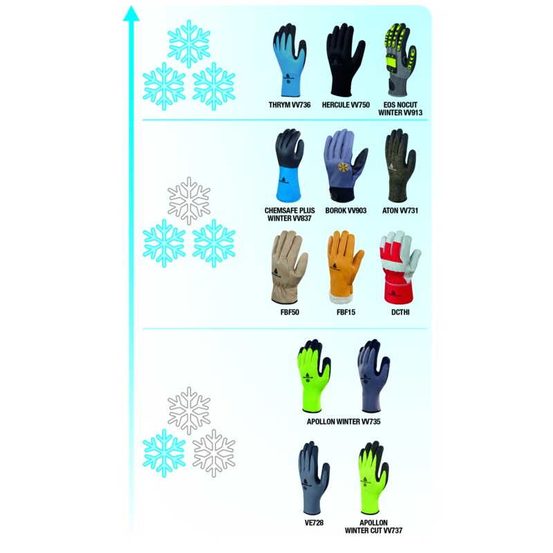 Waterdichte multifunctionele handschoen met een fijne grip voor intensief koud werk. Ondersteuning : Gebreid | Materiaal : Polyamide – Acryl | Coating : Dubbele latexcoating – Volledig coating, behalve de pols | Jauge : 15 Makkelijk te gebruiken: Perfecte pasvorm waardoor gebruikers geen ongemak in de pols voelen tijdens langdurig gebruik EN 388 : 2231B. EN 407 : X2XXXX. EN 511 : 121