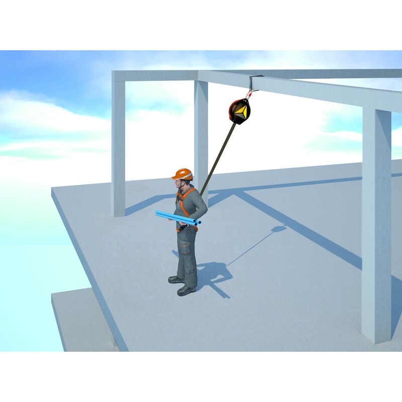 Zelfoprollende bandhaspel voor verticaal en horizontaal gebruik, voor verplaatsing tot 6 meter. Samenstelling van de hoofdsteun : ABS – Polyester | Gewicht : 1,6 kg Horizontal certification