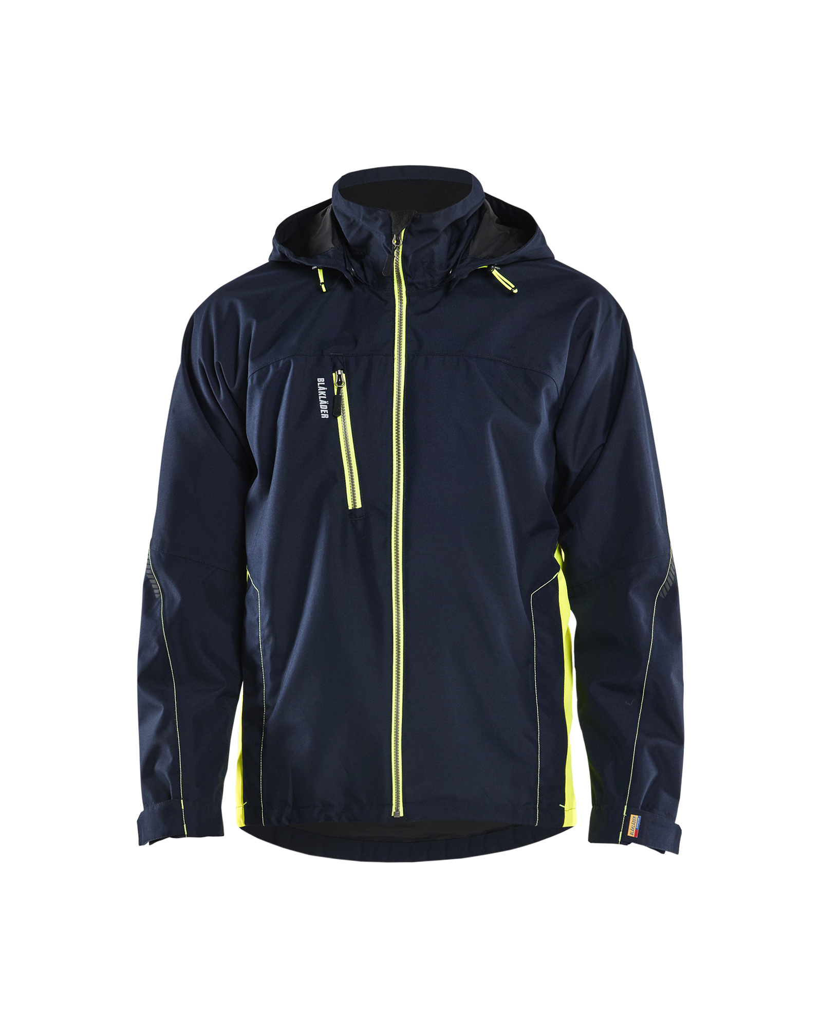 Wind- en waterdicht drielaags shelljack voor heren van VentAir ™, met getapete naden, waterdichte ritsen, voorgevormde mouwen en een capuchon die eventueel gebruikt kan worden bij het dragen van een helm.. Fabric 1: 94% polyester, 6% elastane. Fabric 2: 100% polyester.. 210 g/m²