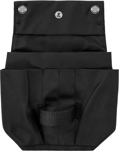 Lichtgewicht houder voor materialen. Eenvoudig te bevestigen aan normale riem of Snikki lichtgewicht gereedschapsriem. 2 zakken. Grote vakken H 150 x B 160 x D 60 mm. Kleine vakken H 120 x B 150 x D 30 mm. Versterkt met klinknagels. 2 knopen voor werkmessen aan de zijkanten. Quick-snap. Polyester en polyamide-laminaat. NO