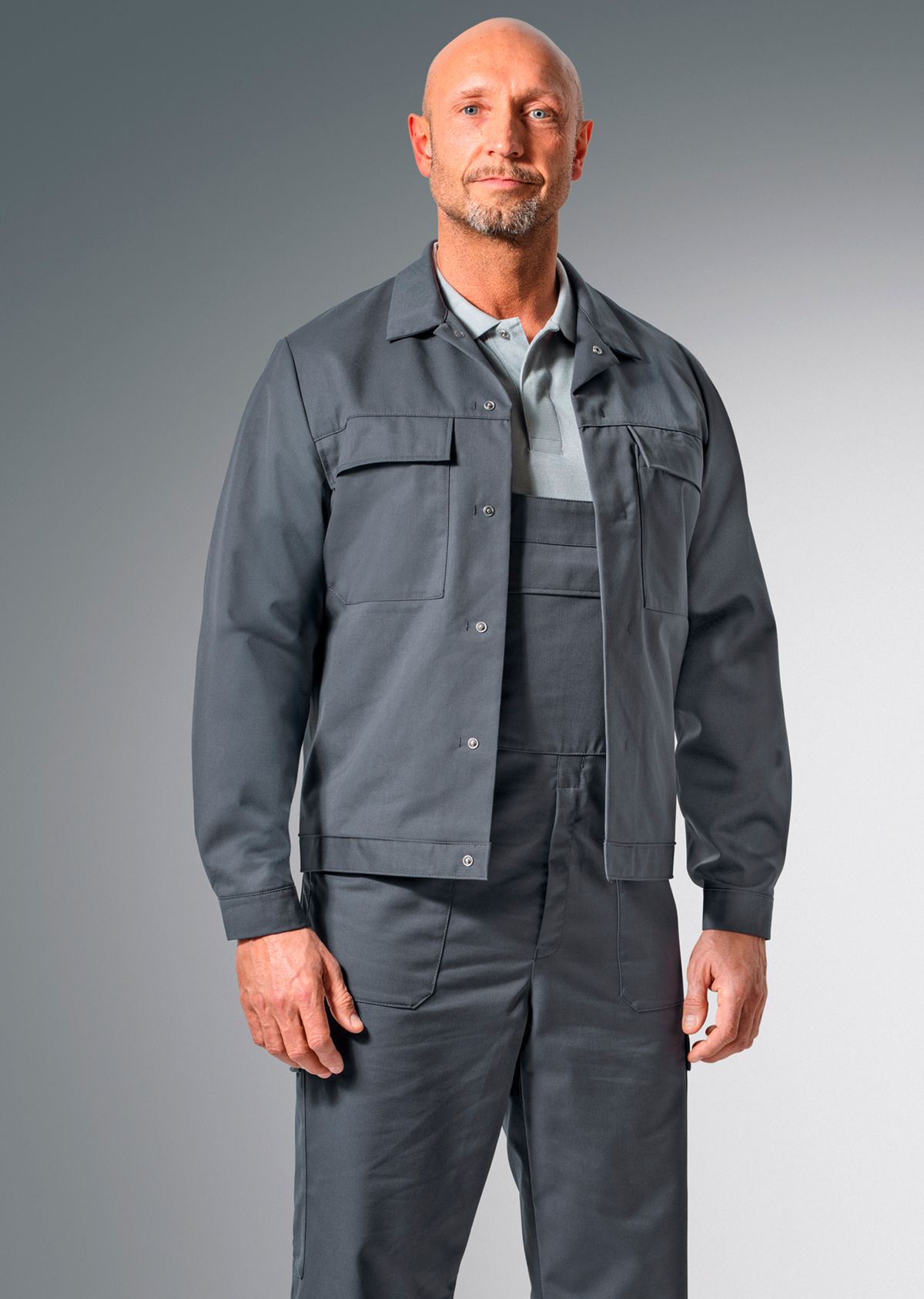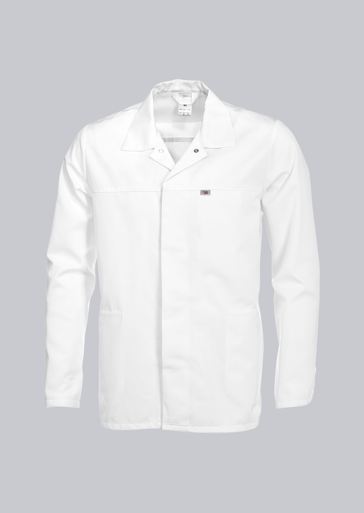 1/1 mouw met verstelbare split, liggend boord, blinde drukknopenlijst, 1 borstzak aan de binnenkant, 2 zijzakken aan de binnenkant. 210,00 g/m², sterk gemengd weefsel, 65% Polyester, 35% Katoen. HACCP, risicoklassen 1-3. 1 borstzak aan de binnenkant, 2 poches latérales intérie, blinde drukknopenlijst, normale pasvorm