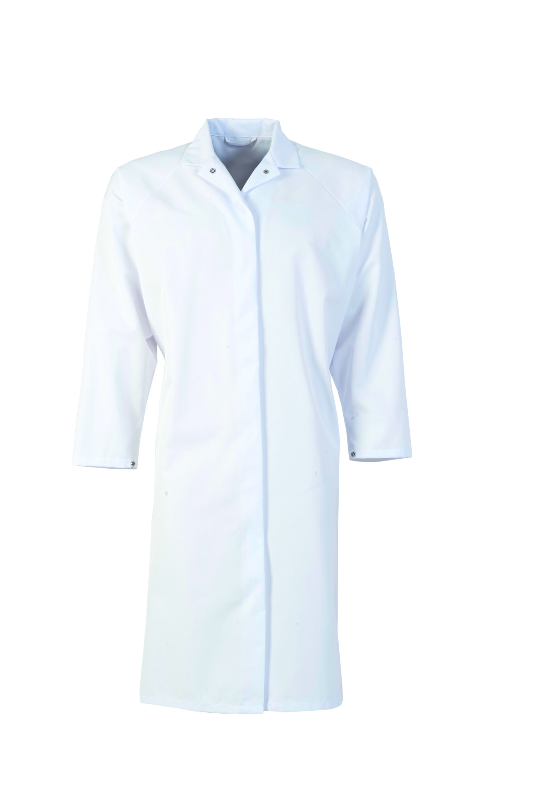 Lange jas die voldoet aan de DIN 10524 standaard voor werknemers in de voedingsindustrie. Voldoet aan de DIN 10524 standaard. Verstelbare manchetten. Binnenzak. Ventilatieopeningen aan zijkant. OK om kleding te voorzien van borduring of transfer. Getest voor industrieel wassen volgens ISO 15797. OEKO-TEX® gecertificeerd. ISO 15797 Industriële wasbaarheid. Test van werkkleding. 65% polyester, 35% katoen. 245 g/m².