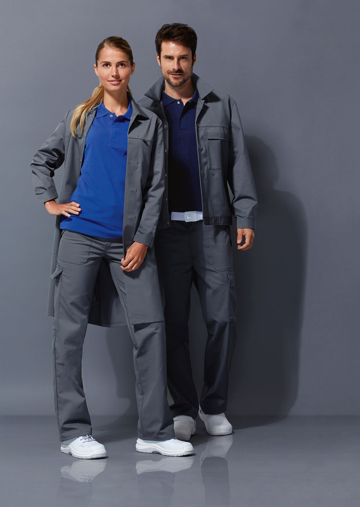1/1 mouw met verstelbare split, liggend boord, blinde drukknopenlijst, 2 interne afsluitbare zijzakken en 1 afsluitbare borstzak. 210,00 g/m², sterk gemengd weefsel, 65% Polyester, 35% Katoen. HACCP, risicoklasse 1. 1 borstzak aan de binnenkant, 2 poches latérales intérie, blinde drukknopenlijst, normale pasvorm