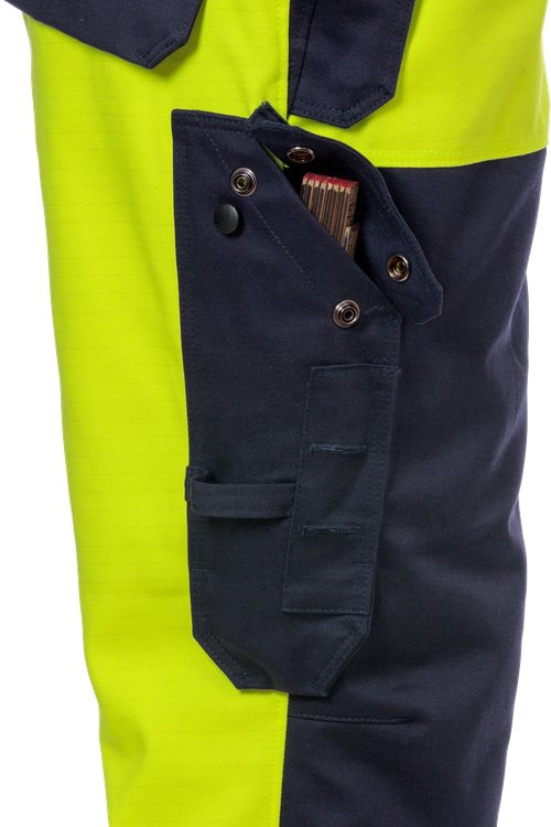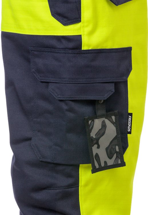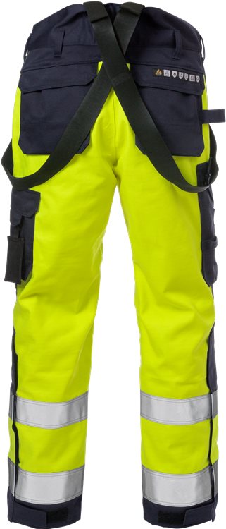 Winterbroek met vlambescherming, goedgekeurd voor lassen en gecertificeerd voor hoge zichtbaarheid klasse 2. Elastische taille en afneembare bretels. Gemaakt van een duurzaam vlamvertragend materiaal en gecertificeerd voor bescherming in lagen tegen elektrische vlambogen. Volledig gevoerd. Elastische afneembare bretels. Riemlussen. 2 voorzakken met klep, drukknoopsluiting en rits. Dubbel verstevigde kruisnaad. 2 met CORDURA® verstevigde achterzakken met klep en drukknoopsluiting. hamerlus. 1 met CORDURA® verstevigde geplooide duimstokzak met klep en drukknoopsluiting, knoop en lus voor werkmes. 1 beenzak met klep en verdekte drukknoopsluiting, telefoonzak met klep en klittenbandsluiting. Met CORDURA® verstevigde kniezakken met opening aan de binnenzijde. Kniezakken voor in hoogte verstelbare kniestukken. Met CORDURA® verstevigde delen op de bovenbenen in contrasterende kleur. Verdekte rits tot aan de knieën. Sneeuwvangers. Verstelbare, met CORDURA® verstevigde broekspijpuiteinden. Goedgekeurd volgens EN 61482-1-2 klasse 1, EN 61482-1-1 ATPV 65 cal/cm² HAF 93,8% (zie tabel voor Vlambooggecertificeerde kledingcombinaties volgens EN 61482-1-2 klasse 2 en open arc volgens EN 61482-1-1), EN ISO 11612 A1 B1 C1 E2 F1, EN ISO 11611 A1 klasse 1 ((zie tabel voor vlamvertragende kleding en laskleding gertificeerde combinaties volgens EN 11612 C2, E3, F2 en EN 11611 A1 klasse 2), EN 1149-5, EN ISO 20471 klasse 2, EN 342 volgens en EN 14404 samen met kniebeschermers 124292 . Goedgekeurd na 25 wasbeurten. Getest voor industrieel wassen volgens ISO 15797. OEKO-TEX® gecertificeerd. IEC 61482-2 Electrische vlamboog “Box en Open arc test”. gecertificeerde beschermende kleding. EN 11612 Hitte en vlammen. Gecertificeerde beschermende kleding. EN ISO 11611 Lassen en aanverwante processen. Gecertificeerde beschermende kleding. EN 1149 Electrostatische eigenschappen, ontwerp-eisen. Gecertificeerde beschermende kleding. EN 20471 Hoge zichtbaarheidskleding. Gecertificeerde beschermende kleding. EN 14404 Kniebescherming. Gecertificeerde beschermende kleding. EN 342 Bescherming tegen kou. Gecertificeerde beschermende kleding. ISO 15797 Industriële wasbaarheid. Test van werkkleding. 75% katoen, 24% polyester, 1% antistatische vezel. Voering: 100% polyester. Versteviging: 79% katoen, 20% polyamide, 1% antistatische vezel. Outer fabric 365 g/m², lining 315 g/m².