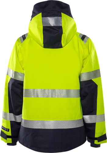Vlamwerend multinorm shell jack van waterdicht, winddicht en ademend materiaal. Comfortabel jack het gehele jaar door met inherente vlambescherming. Waterdicht, winddicht en ademend. Vuil-, olie- en waterafstotend. Afneembare en verstelbare capuchon. Opening aan de voorzijde met tweewegritssluiting tot bovenaan de kraag en verborgen klittenbandsluiting. 2 borstzakken met verborgen ritssluiting, waarvan één met D-ring aan de binnenzijde. Napoleon zak met ritssluiting en binnenzak voor mobiele telefoon, toegankelijk vanaf de buitenzijde. 2 binnenzakken, waarvan één met ritssluiting. 2 met fleece gevoerde voorzakken met ritssluiting. Verstelbare mouwuiteinden met elastische binnenmanchet. Verlengde achterzijde. Verstelbare zoom met trekkoord. Rits in voering voor transfer en borduurwerk. Waterkolom 10.000 mm. Ademend vermogen RET 14,44. Goedgekeurd volgens EN 61482-1-2 vlamboogbescherming klasse 2, EN 61482-1-1 ELIM: 27 cal/cm², EN ISO 11612 A1 A2 B1 C1 F1, EN ISO 11611 A1 A2 klasse 1, EN 1149-5, EN 13034 Type PB [6], EN ISO 20471 klasse 3 en EN 343 klasse 3/4. Goedgekeurd na 25 wasbeurten. OEKO-TEX® gecertificeerd. IEC 61482-2 – Electric Arc Box test and Open arc test With ELIM value. EN 11612 Hitte en vlammen EN ISO 11611 Lassen en aanverwante processen Airtech® waterdicht, winddicht en ademend materiaal 50% modacryl, 41% katoen, 7% PU, 2% antistatische vezel, 2-laags laminaat Getapete naden Voering 50% aramide, 50% viscose FR Inherente vlambescherming Buitenstof 260 g/m² Voering 130 g/m²