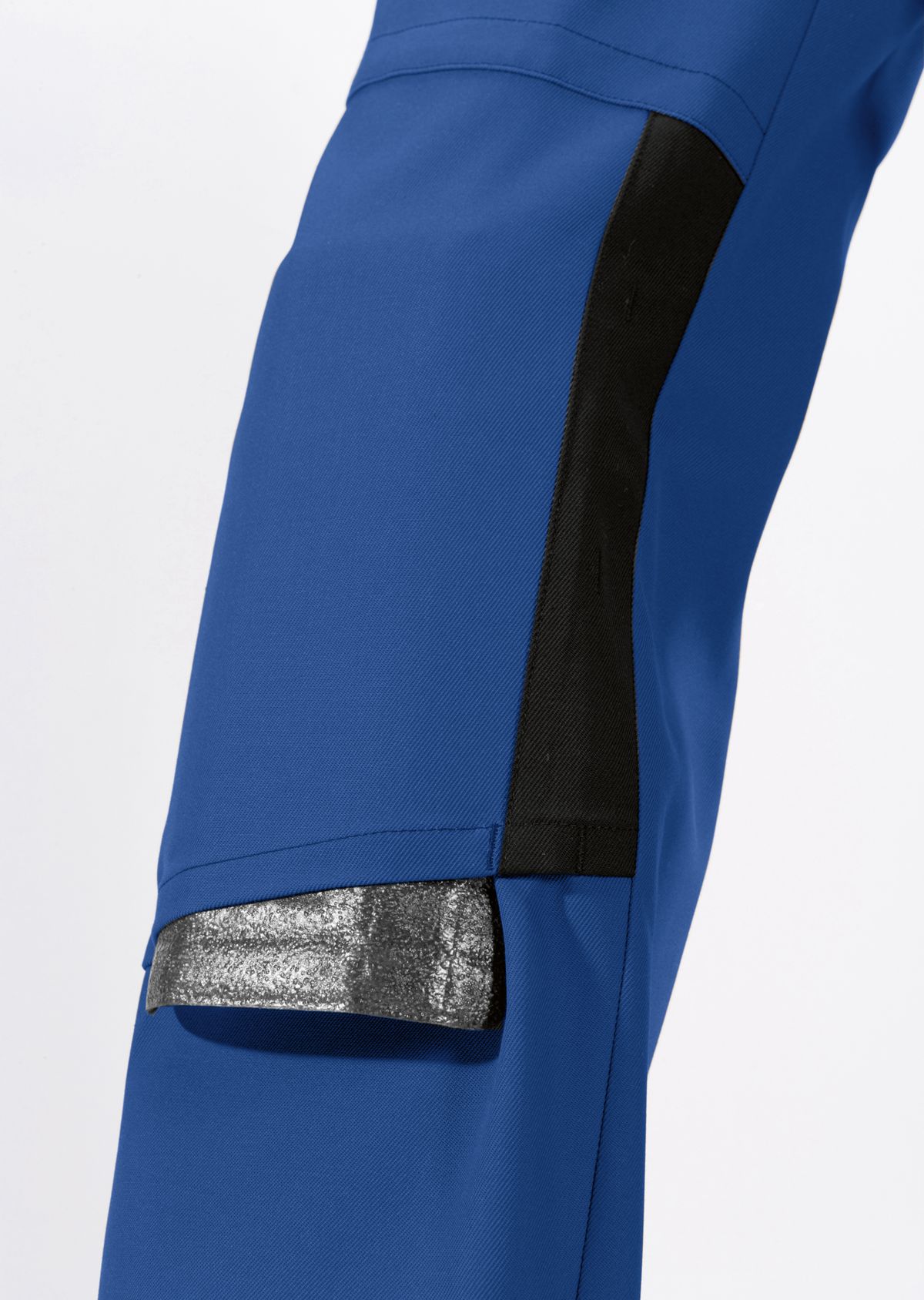 Elastische schouderbanden met kunststof gespen, grote dubbele borstzak met klep, waarvan 1 met blinde ritssluiting, 2 zijzakken, beenzak met opgezet GSM-vak, beide met klep, verlengd rugpand, 1 duimstokvak met klep, 2 achterzakken met klep, voorkant broek twee lagen, kniezakken voor kniebeschermers 1839 000 53 (apart bestellen). 320,00 g/m², , 35% Aramide, 30% Modacryl, 25% Katoen, 9% Polyamide, 1% Overige vezels. grote dubbele borstzak met klep. verlengd rugpand, gecertificeerde kniekussens bestellnr. 1839 000 53,