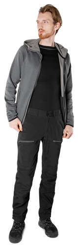 Duurzame broek met stretchvlakken gemaakt van gerecycled en biologisch materiaal, ontworpen voor buitenwerkzaamheden. Behandeld met duurzaam DWR. Ventilatie in de zijkant om de temperatuur te regelen. Reflecterende details voor een betere zichtbaarheid in omstandigheden met weinig licht. Vier zakken om je spullen bij de hand te hebben. Gerecycled en biologisch materiaal. 4-way stretch panelen op voorkant, kruis, schouderpas op de rug en dijbeen. Fluorkoolwaterstofvrije waterafstotende (DWR) behandeling op dijbeen, rug en onderbeen. Gedeeltelijk elastische tailleband met Fristads-print. Verlengde riemlus. Dubbel verstevigde kruisnaad. YKK-ritsen. 2 voorzakken. 2 geplooide dijbeenzakken met rits, 1 met telefoonzak. 2 zijsplitten met gaas en rits. Zwarte reflecterende details op voor-, zij- en achterkant. Kniezakken met opening aan de buitenkant. Verborgen schoenhaak. Broekspijpuiteinden verstelbaar met drukknoopsluiting. Elastisch broekspijpuiteinde. OEKO-TEX® gecertificeerd. 65% gerecycled polyester, 35% biologische katoen 92% gerecycled stretchpolyester, 8% elastaan 205 g/m² Stretchmateriaal 260 g/m²