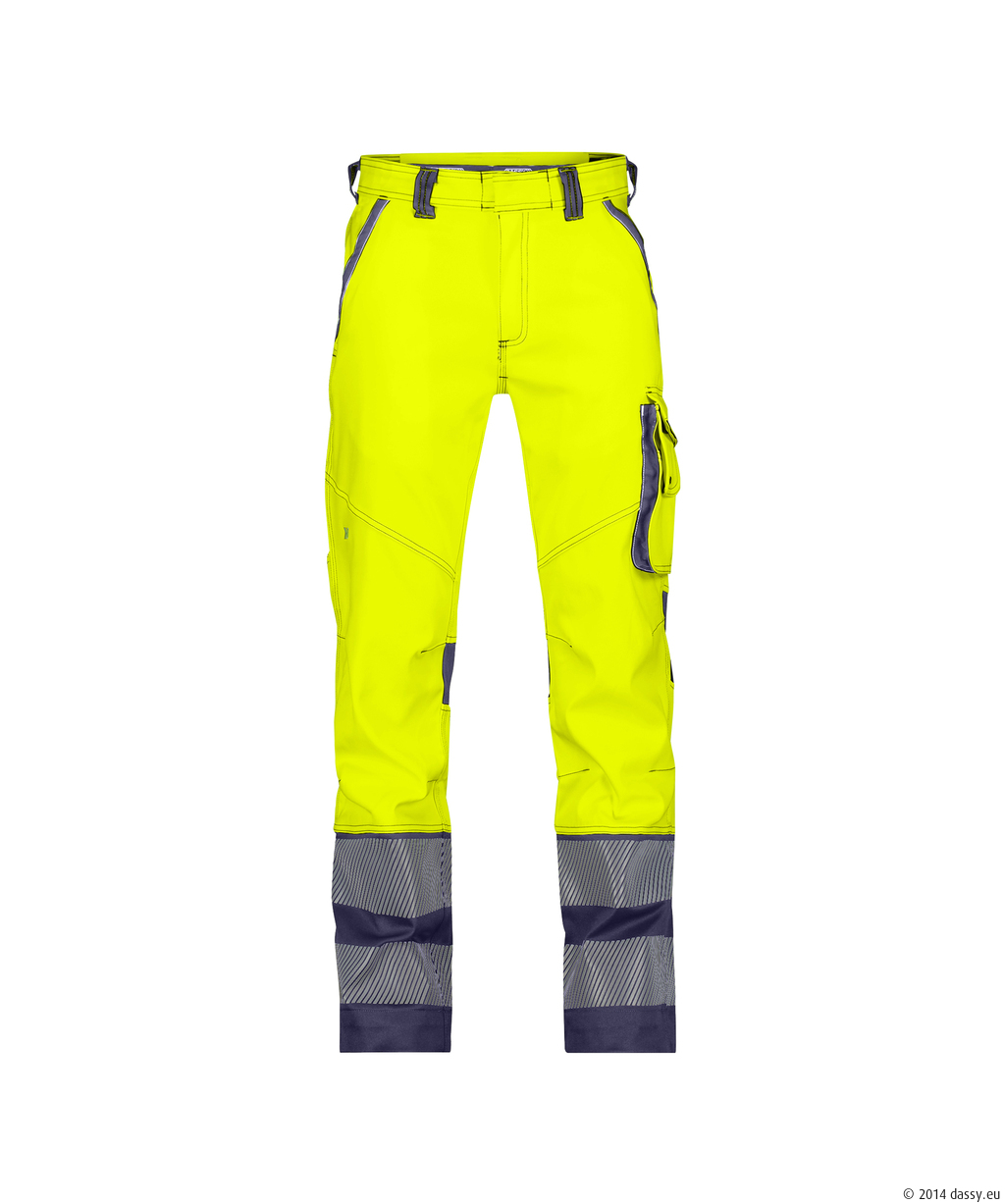 Mechanisch stretch FlexForce-materiaal / Moderne pasvorm / Gerekte rib bij de taille / Verborgen jeansknoop / D-ring voor sleutels in de taille / Gulp met rits / Reflex-details op het been / Pre- gevormde knieën / met CORDURA® versterkte kniezakken / Hoogteverstelling voor kniebeschermers in kniezak / Multifunctionele beenzak met rits in contrastkleur en binnenventilatie / Mobiele telefoonzak met klep en verborgen drukknoopsluiting / Dubbele CORDURA® versterkte duimstokzak / Twee achterzakken / Goedgekeurd volgens EN 14404 samen met kniebeschermers 127440 / Industrieelwassen goedgekeurd volgens ISO 15797 / OEKO-TEX® gecertificeerd.-ISO 15797 Industriële wasbaarheid. Test van werkkleding.;EN 14404 Kniebescherming. Gecertificeerde beschermende kleding.-65% Polyester, 35% Katoen.-250 g/m².