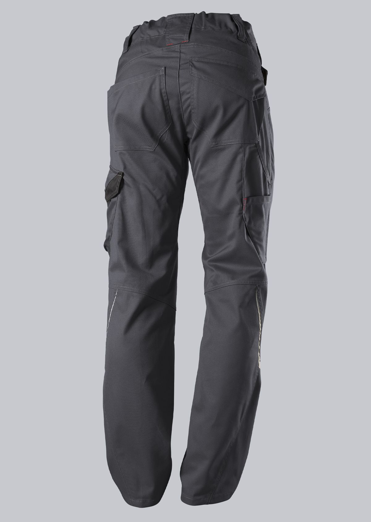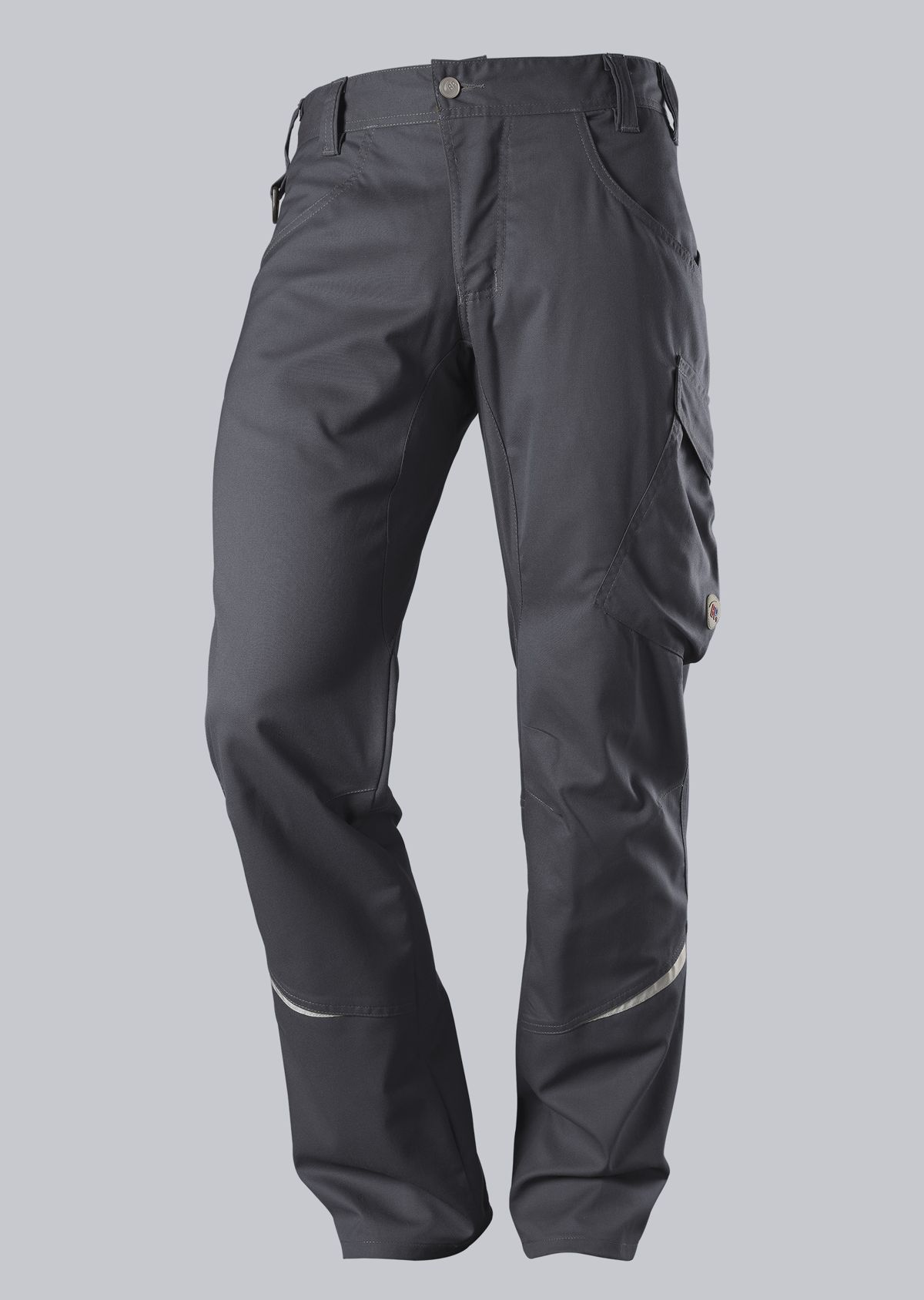 Slank silhouet, verhoogde elastische tailleband aan de achterkant voor optimale pasvorm, D-ring voor bevestigen van accessoires, 2 zijzakken met stretch-inzetstukken voor betere toegang, 2 achterzakken, 1 ruime beenzak met geïntegreerde smartphonezak, loshangende dubbele duimstokzak, ergonomische snit, reflecterende elementen op broekspijpen. 250,00 g/m², duurzaam gemengd weefsel met stretch-effect, 65% Polyester, 35% Katoen. elastische tailleband aan achterkant. ergonomische snit, relecterende elementen, slanke pasvorm