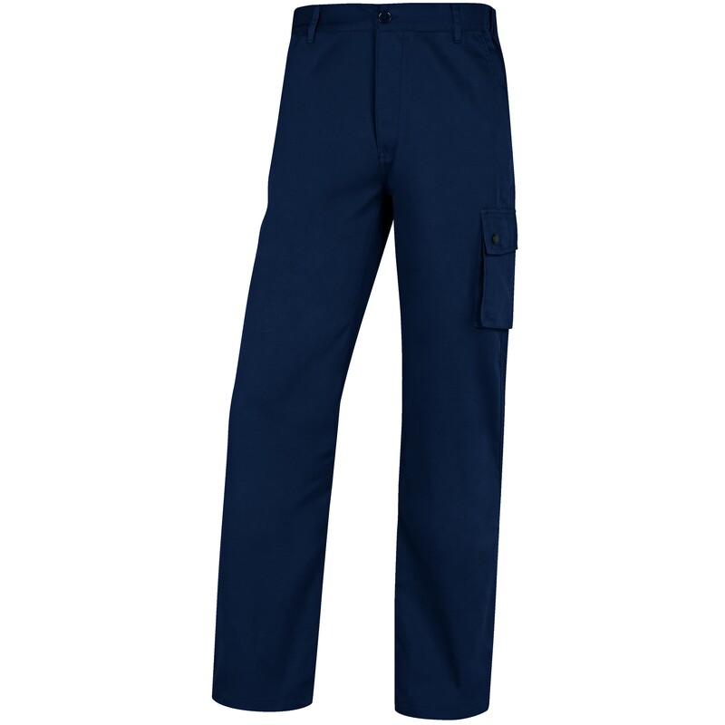 65% polyester/35% katoen, +/- 245 g/m², steekzakken, achterzakken met klep, dijbeenzak, gereedschapszak, potloodzak, meterzak, gsm-zak, lus voor ID-kaarthouder, verstelbare rugelastiek, elastische tailleband aan de zijkant, stretchmateriaal aan de zijkant, regular fit, normale taillehoogte, drienaaldstiksel, verlengbare zoom (extra 5 cm), ritssluiting en jeansknoop.