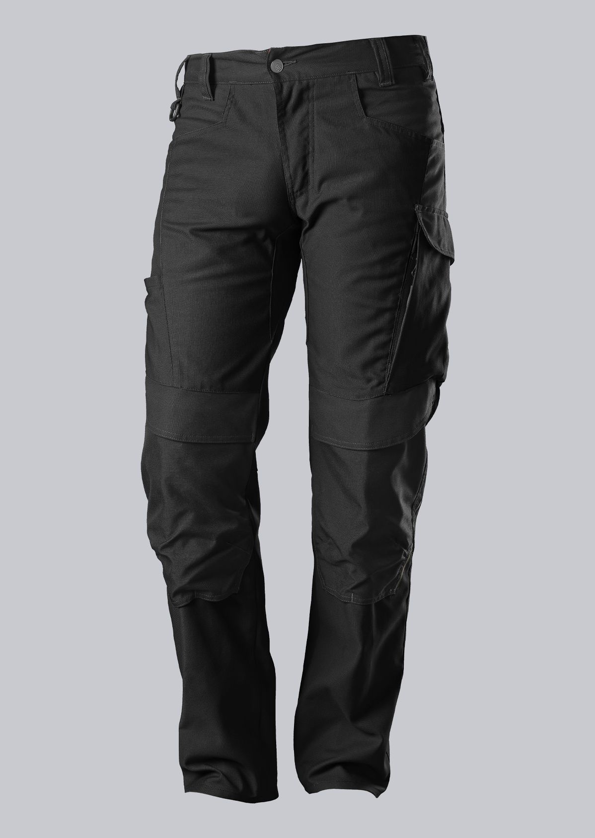 Verhoogde elastische tailleband aan de achterkant voor optimale pasvorm, D-ring voor bevestigen van accessoires, 2 zijzakken, 2 achterzakken, waarvan 1 zak met klepsluiting, 1 ruime beenzak met geïntegreerde zak met ritssluiting en opgezette smartphonezak, 2 pennenzakken, dubbele duimstokzak, ergonomische snit, reflecterende elementen op broekspijpen, Cordura®-kniezakken (BP® Kniekussens 1839-000-53 moeten apart besteld worden). 285,00 g/m², duurzaam gemengd weefsel met stretch-effect, 65% Polyester, 35% Katoen. Gemaakt van gerecyclede polyester (PET) en duurzame. Verhoogde taille voor optimale pasvorm, kniezakken, slanke pasvorm