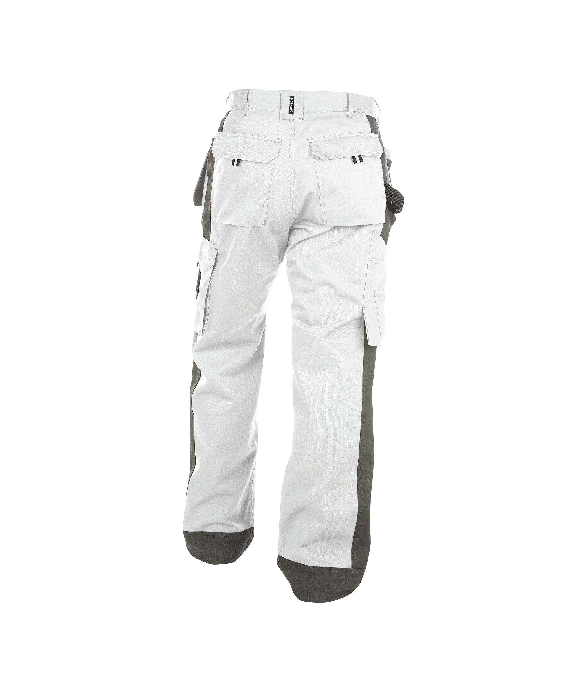 65% polyester/35% katoen, +/- 245 g/m², verstelbare Cordura® kniezakken, wegsteekbare Cordura® spijkerzakken met gereedschapslussen, grote insteekzakken voor de spijkerzakken, achterzakken met klep, dijbeenzakken, gereedschapszak, potloodzak, meterzak, hamerlus, gsm-zak, lus voor ID-kaarthouder, verstelbare rugelastiek, regular fit, normale taillehoogte, drienaaldstiksel, verlengbare zoom (extra 5 cm), ritssluiting en jeansknoopcertificatie EN 14404:2004+A1:2010 – verstelbare Cordura® kniezakken in combinatie met DASSY® CRATOS kniebeschermers.