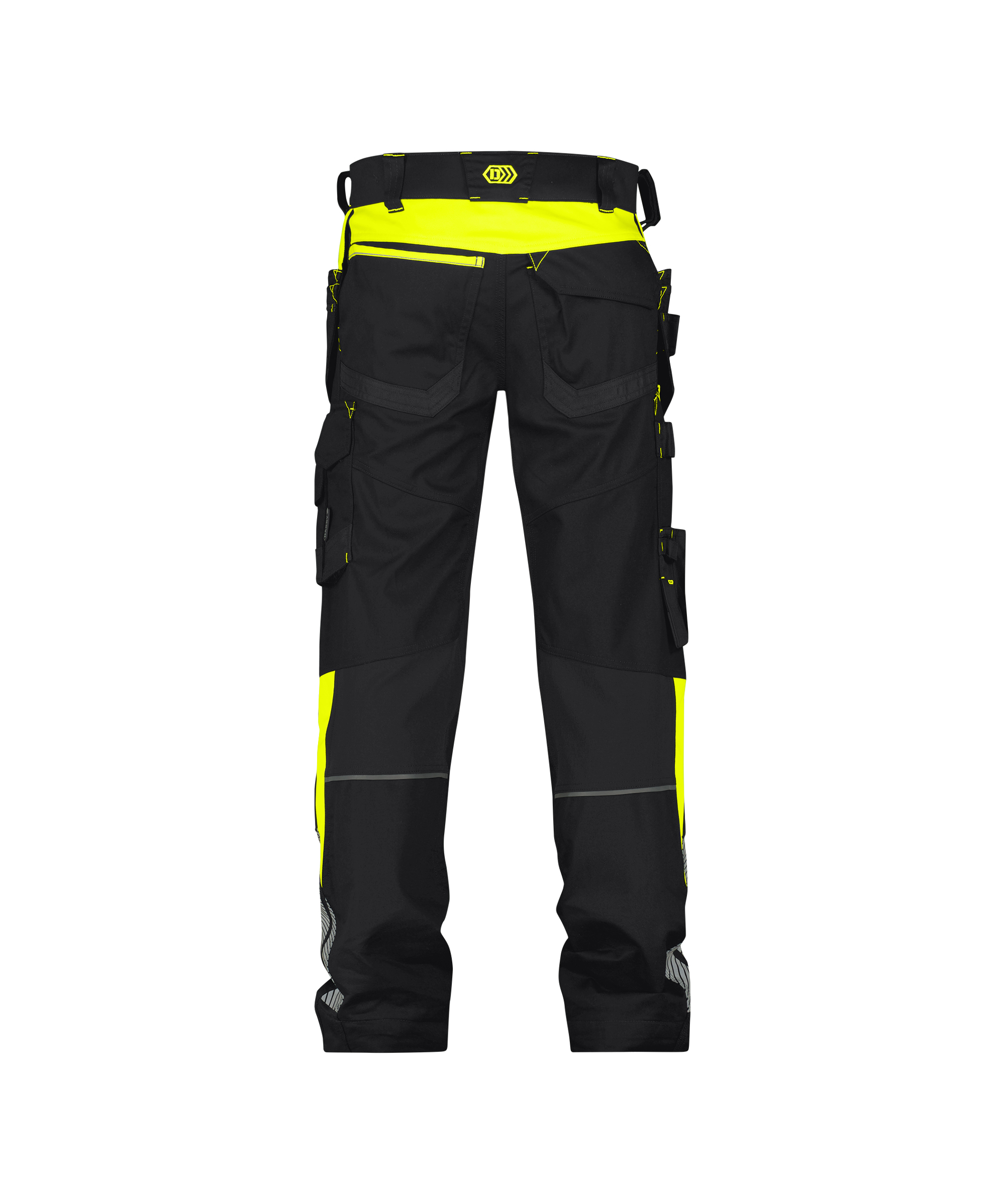 65% polyester/35% katoen, +/- 245 g/m², verstelbare Cordura® kniezakken, Cordura® spijkerzakken met gereedschapslussen, ritszak voor klein gereedschap, multifunctionele riemlus, steekzakken, achterzak met klep, open achterzak, dijbeenzak, potloodzak, meterzak, breekmeszak, knoop voor meshouder, D-ring, gsm-zak, afneembare ID-kaarthouder, verstelbare rugelastiek, verlaagde taille, drienaaldstiksel, adjusted fit, stiksels in contrastkleur, verborgen jeansknoop en rits, 4-way stretch aan knie, in knieholte en in kruis, gesegmenteerde reflecterende details, reflecterende bies achteraan de knie, fluo bartacks.