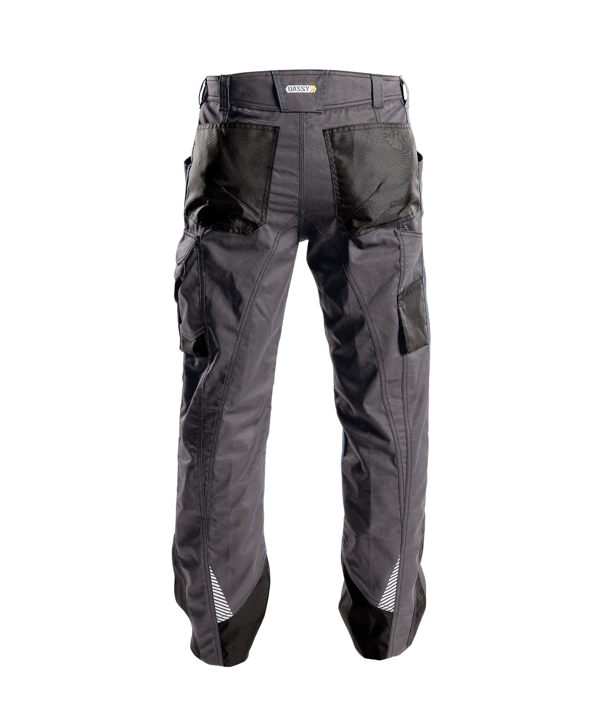65% polyester/35% katoen, +/- 250 g/m², steekzakken, open achterzakken, dijbeenzak, meterzak, breekmeszak, gsm-zak, afneembare ID-kaarthouder, veiligheidszak met ritssluiting, reflecterende details, verstelbare rugelastiek, verlaagde taille, drienaaldstiksel, adjusted fit, stiksels in contrastkleur, verlengbare zoom (extra 5 cm), verborgen jeansknoop en rits,