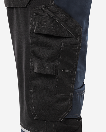 Werkbroek met panelen van 4-way stretchmateriaal, uitgerust met alle benodigde functies voor professionals. Gemaakt van een lichtgewicht en slijtvast materiaal met mechanische stretch, deels van gerecycled polyester. Concept: Alnaryd Deels gerecycled materiaal / Mechanische stretch / Grote 4-way stretchpanelen op achterzijde en in kruis / 2 steekzakken / 2 achterzakken van slijtvast materiaal / Extra lussen aan voorzijde voor ID-pas of sleutels / Dubbel verstevigde kruisnaad / Hamerlus / Duimstokzak of more durable Materiaal with pen pocket en concealed button en lus voor timmermansmes/ Grote beenzak van slijtvast materiaal met rits, ook handig voor duimzok / Met CORDURA®-verstevigde kniezakken met opening aan de bovenzijde / Kniezakken voor in hoogte verstelbare kniebeschermers / Uiteinde pijpen extra verstevigd met slijtvast materiaal / Beenlengte aan te passen met 5 cm extra aan onderzijde pijpen / Reflectiedetails aan achterzijde knieen / Goedgekeurd volgens EN 14404 in combinatie met kniebeschermers 124292 / OEKO-TEX® gecertificeerd. Basismateriaal 65% gerecycled polyester, 35% katoen, mechanische stretch twill Stretch 92% gerecycled polyester, 8% elastaan Overig materiaal 100% gerecycled polyester Basismateriaal 250 g/m² Stretch 220 g/m² Overig materiaal 230 g/m²