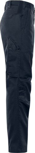 Broek van lichtgewicht en duurzaam materiaal, deels gemaakt van gerecycled polyester. Comfortabele werkbroek met mechanische stretch en ribgebreide stretch in de taille. Goedgekeurd voor industrieel wassen. Concept: Forsbo Deels gerecycled materiaal. Mechanische stretch. Ribgebreide stretchpanelen in de taille. Verborgen knoop aan de voorkant. 2 voorzakken. 2 achterzakken. Duimstokzak en gereedschapszak. Beenzak met lus voor id-kaarthouder, klep met verborgen drukknoopsluiting. Voorgevormde knieën. Verstelbare beenlengte met 5 cm extra zoom. Goedgekeurd voor industrieel wassen volgens ISO 15797. OEKO-TEX® gecertificeerd. 65% gerecycled polyester, 35% katoen, mechanische stretch twill 245 g/m²