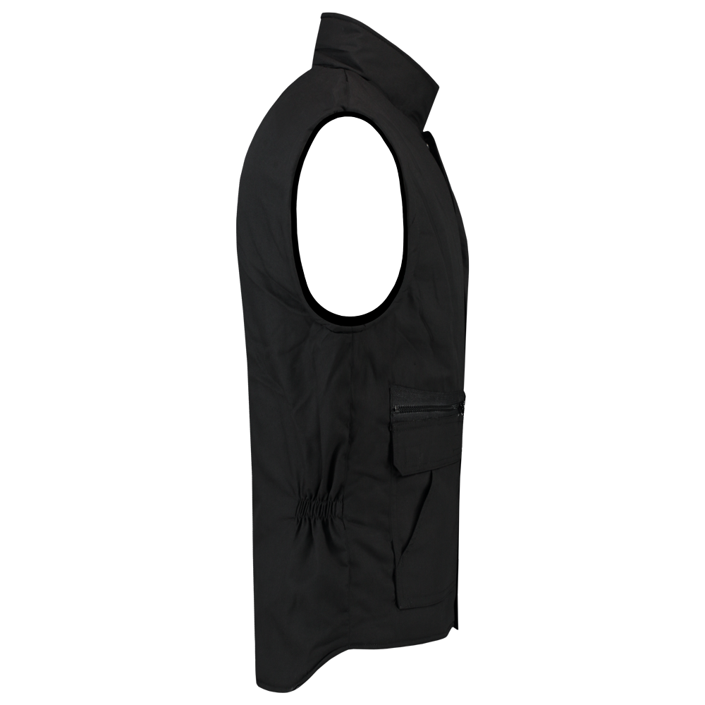 Deze bodywarmer heeft een traditionele pasvorm. Het verlengde rugpand zorgt ervoor dat ook tijden het bukken de rug bedekt blijft. De bodywarmer biedt voldoende opbergruimte met 6 zakken aan de voorzijde en 2 binnenzakken, waarvan 1 geschikt voor de telefoon. De rits wordt bedekt door een stormflap die gesloten wordt met drukkers. De armsgaten zijn voorzien van elastische windvangers. In het rugpand zit een printerrits voor het borduren of bedrukken van het artikel.