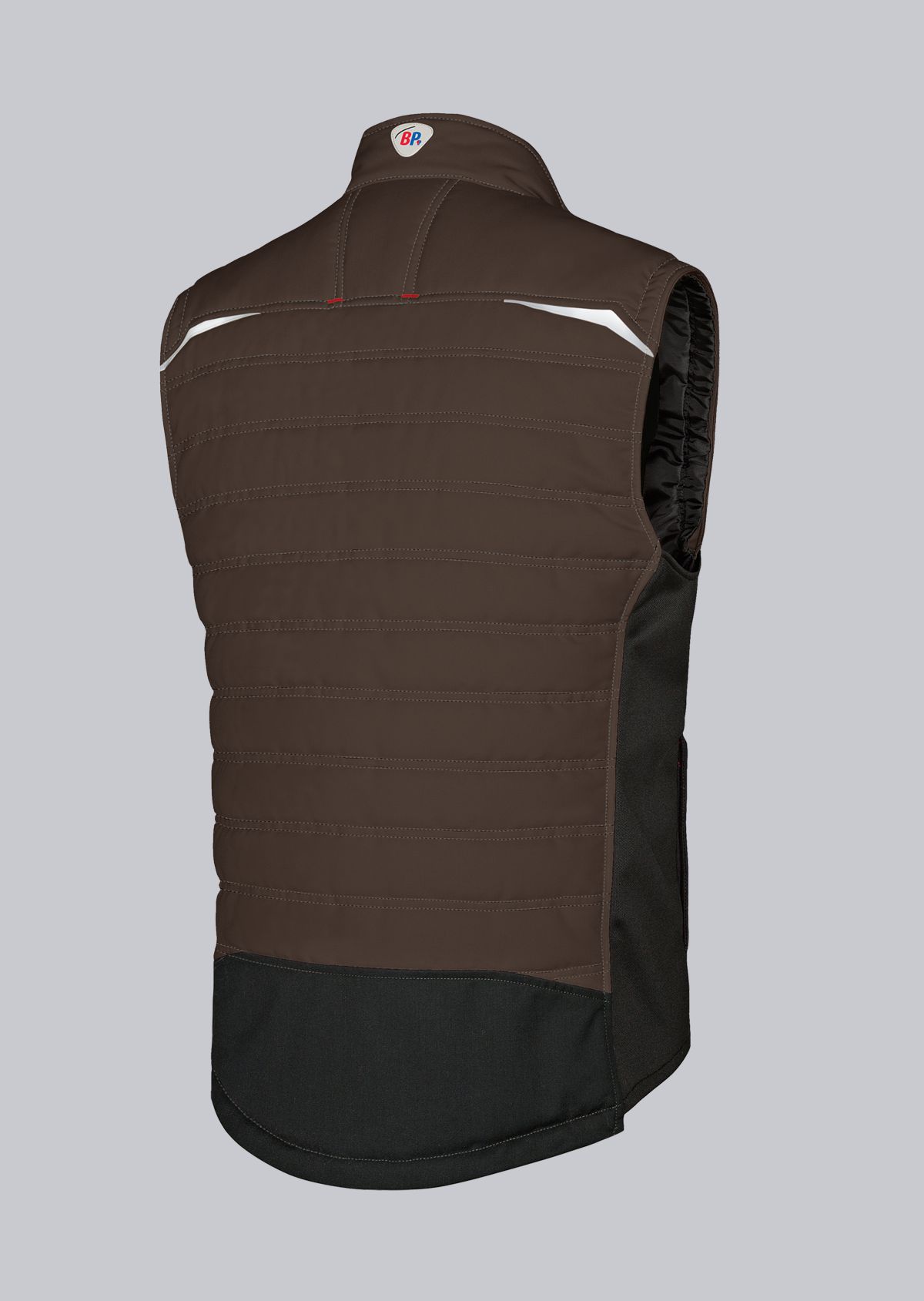 Lichte, gewatteerde bodywarmer die perfect werkt als tussenlaag. Volledig gevoerd met lichte, gewatteerde voering. Softshellpanelen in de zijkanten. Ritssluiting op de voorkant over de volledige lengte. 2 voorzakken met rits. Elastische band in de hals, armsgaten en onderkant. 100% polyester. Quilted fabric: 160 g/m², softshell: 240 g/m².