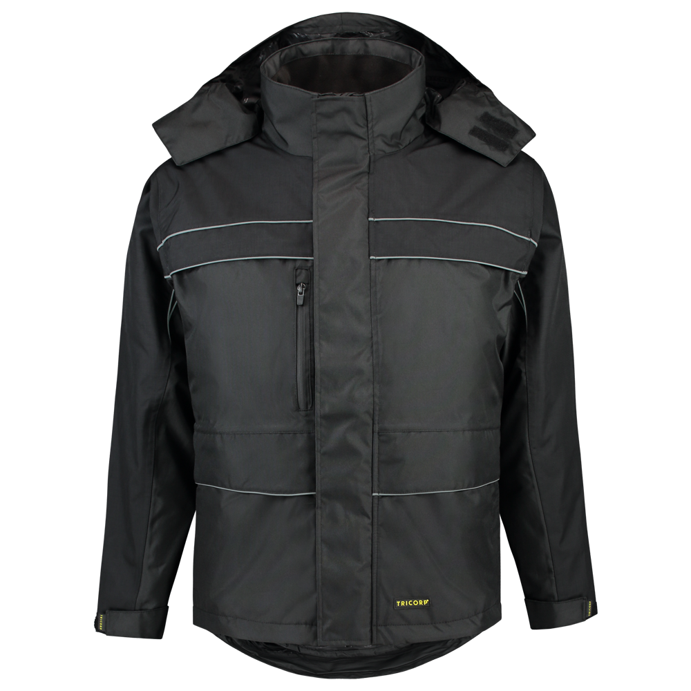 Verder is de Midi Parka Cordura voorzien van een dubbele stormflap met waterkering, een afritsbare capuchon, een verdekte drukknoopsluiting en een verlengd rugpand. Deze Tricorp werkjas is warm en comfortabel door de binnenkraag met microfleece en een uitneembaar thermojack.