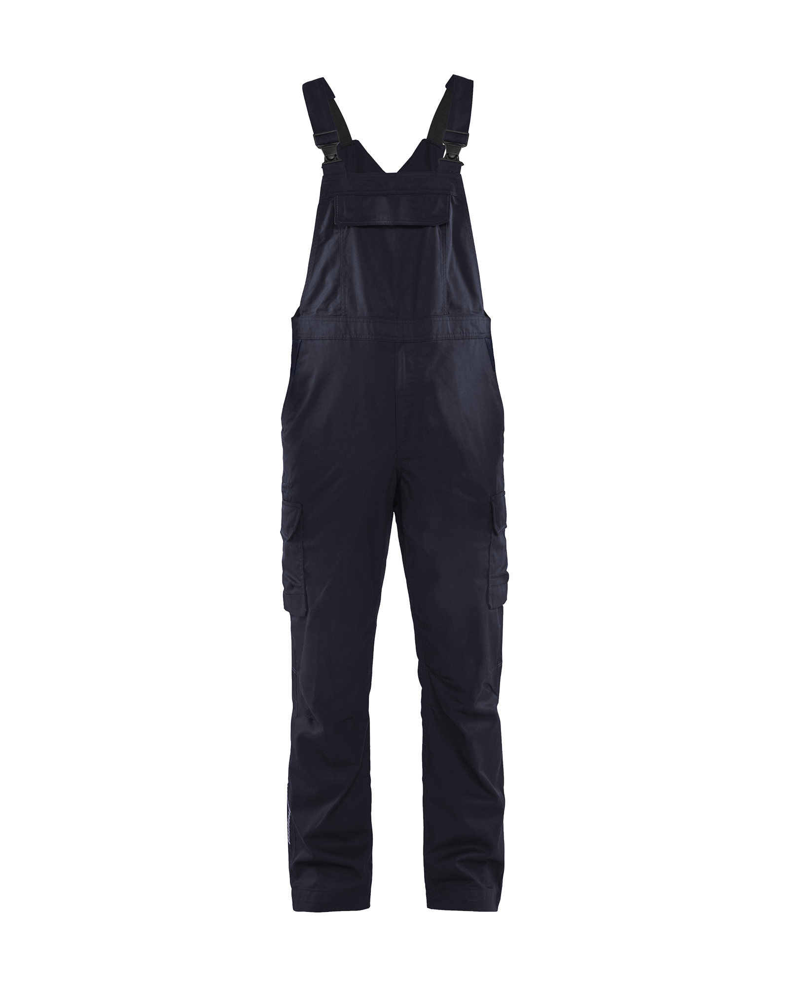 · Industrieel wasbare en krasvrije bretelbroek van behaaglijk katoenen canvas met 2-weg stretch.
