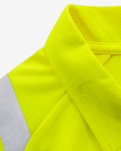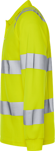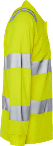 Hogezichtbaarheids poloshirt met lange mouwen gemaakt van gerecycled materiaal van een functioneel breisel voor een beter ademend vermogen. Het lichtgewicht en luchtige materiaal biedt een hoog comfort tijdens warmere werkdagen. Concept: Trofta Gerecycled functioneel breisel. Reflecterende stretch transfers. Kraag van dubbelzijdig materiaal. Raglanmouwen van dubbelzijdig materiaal. 5 cm inzetstuk met opening in het reflecterende gedeelte aan de zijkanten en mouwen voor extra comfort. Goedgekeurd volgens EN ISO 20471 class 3. OEKO-TEX® gecertificeerd. EN 20471 Hoge zichtbaarheidskleding. 100% gerecycled polyester 150 g/m²