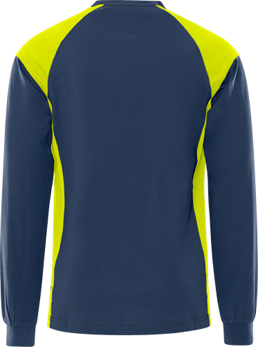 T-shirt met lange mouwen van zware kwaliteit gemaakt van gerecycled polyester en katoen. Duurzaam en comfortabel T-shirt dat is goedgekeurd voor industrieel wassen, verkrijgbaar in een tweekleurig design. Concept: Skarup Deels gerecycled materiaal. Ribgebreide kraag en manchetten. Lange raglanmouwen. Goedgekeurd voor industrieel wassen volgens ISO 15797. OEKO-TEX® gecertificeerd. 65% gerecycled polyester en 35% katoen (Hi Vis Geel 80% gerecycled polyester, 20% katoen) 200 g/m²