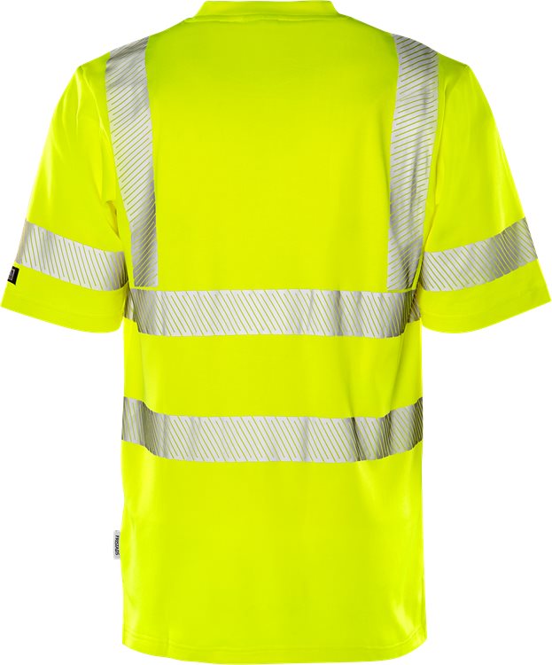 T-shirt met hoge zichtbaarheid met een hoog gehalte katoen voor zacht comfort. Ribgebreide kraag. Borstzak. Gestreepte reflecterende opdruk. Katoen aan de binnenzijde. Goedgekeurd volgens EN 13758-2 UPF 40+ UV beschermende eigenschappen en volgens EN ISO 20471 klasse 2 – maten XS – M en klasse 3 – maten L – 3XL. OEKO-TEX® gecertificeerd. EN 13758-2:2003+A1:2006 – UV protection. Certified protective clothing EN 20471 Hoge zichtbaarheidskleding. Gecertificeerde beschermende kleding. 55% katoen, 45% polyester. 190 g/m².