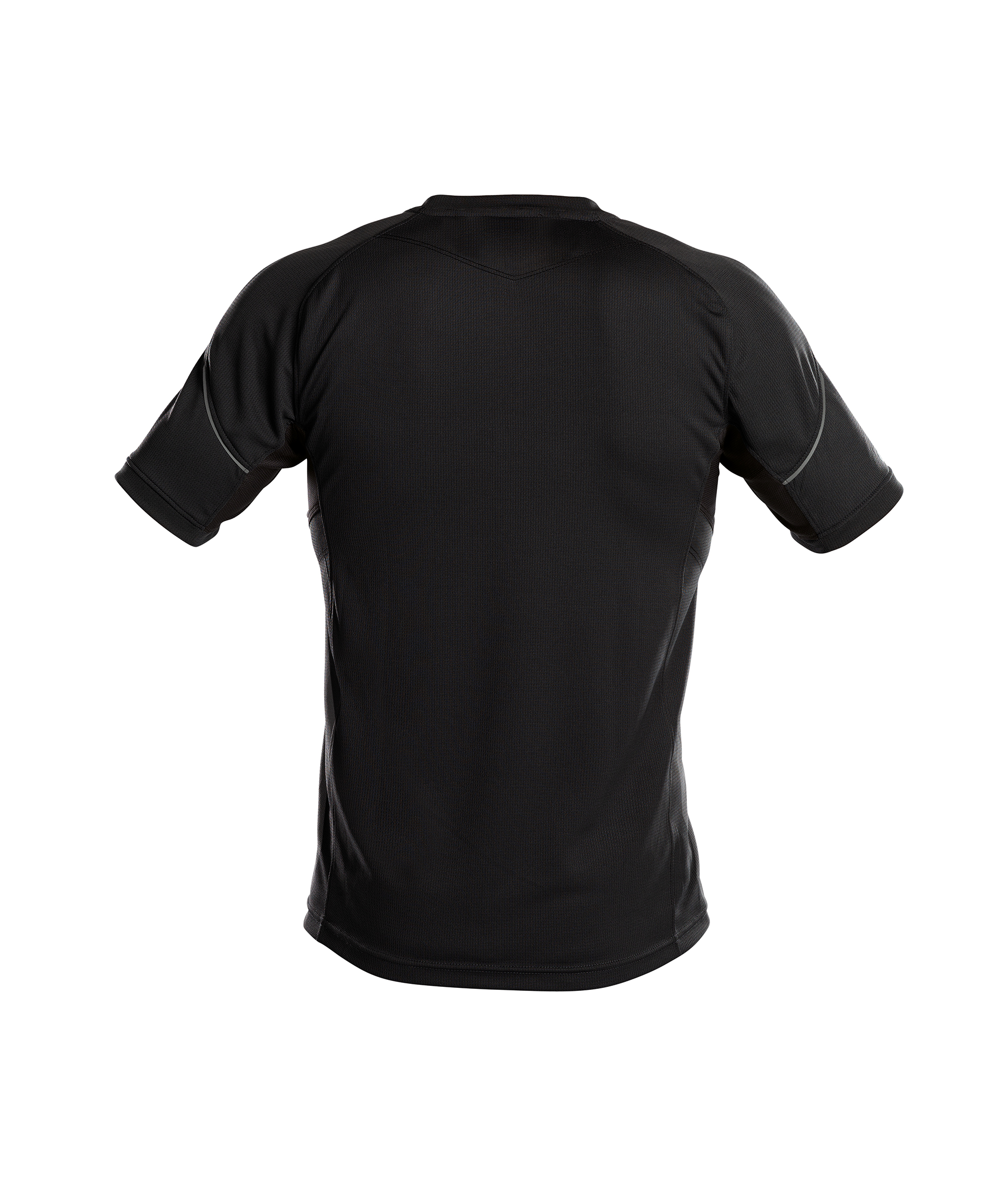 100% polyester, +/- 140 g/m², reflecterende details, ronde hals, tweenaaldstiksel aan zoom en hals, stiksels in contrastkleur, geprint neklabel voor meer comfort, ademende meshstof onder de armen, geschikt voor bedrukking.