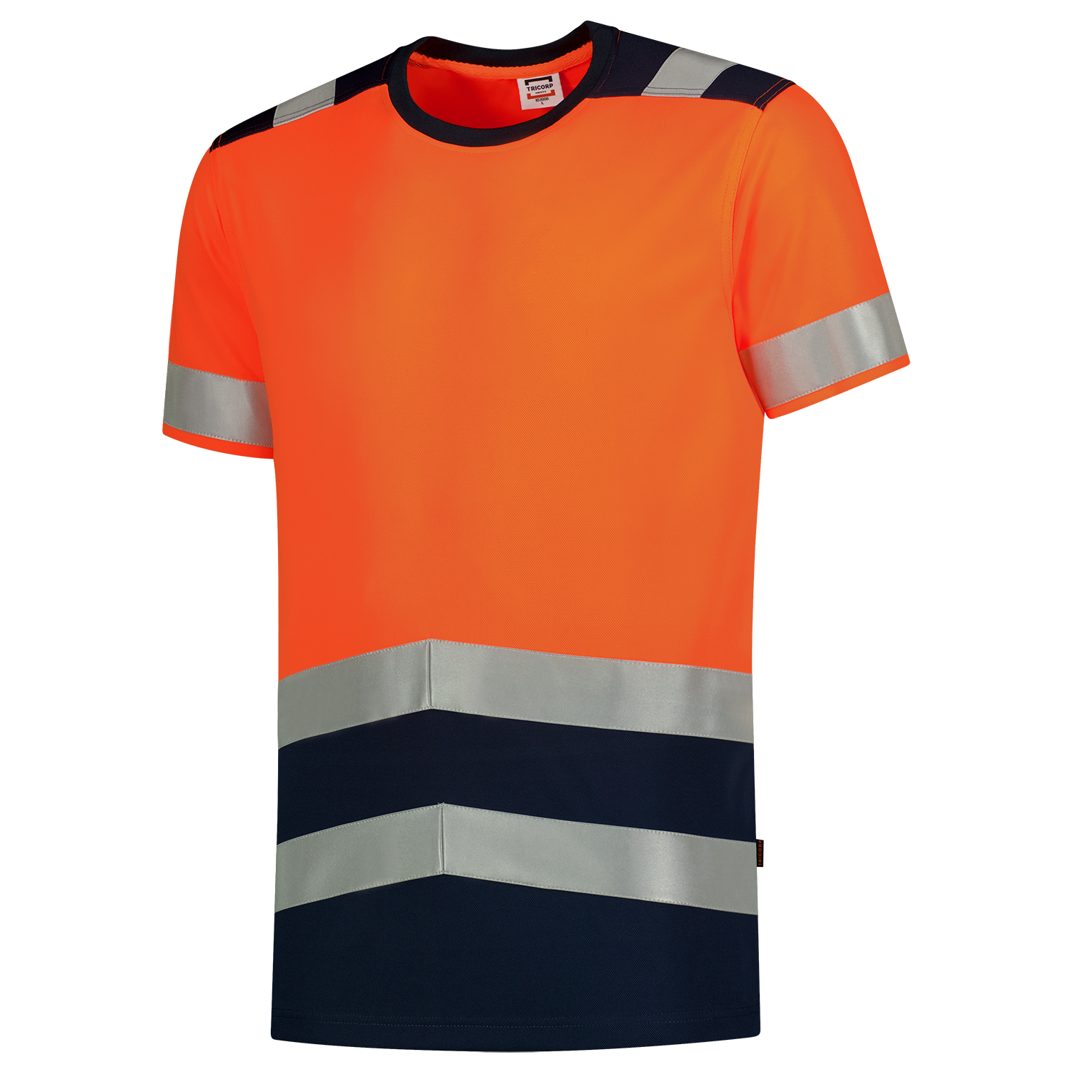 Het tweekleurige mesh T-shirt combineert ademende Cotton Comfort-stof met ventilerende inserts van mesh-panelen die lucht laten circuleren. Gegarandeerd om de drager koel en droog te houden in warme werkomstandigheden.. Vochtafdrijvend en ademend materiaal. Hoog katoen aandeel voor perfect comfort. Een mesh paneel onder de arm voor ventilatie. Reflecterende striping om beter zichtbaar te zijn. Ontworpen met comfortabele pasvorm. Nekbeschermer. Gecertificeerd volgens EN ISO 20471 na 50 wasbeurten. UPF 40+ doek blokkert 98% van de UV straling. Voldoet aan de RIS 3279-TOM voor de Engelse spoorwegindustrie (alleen oranje). CE gecertificeerd