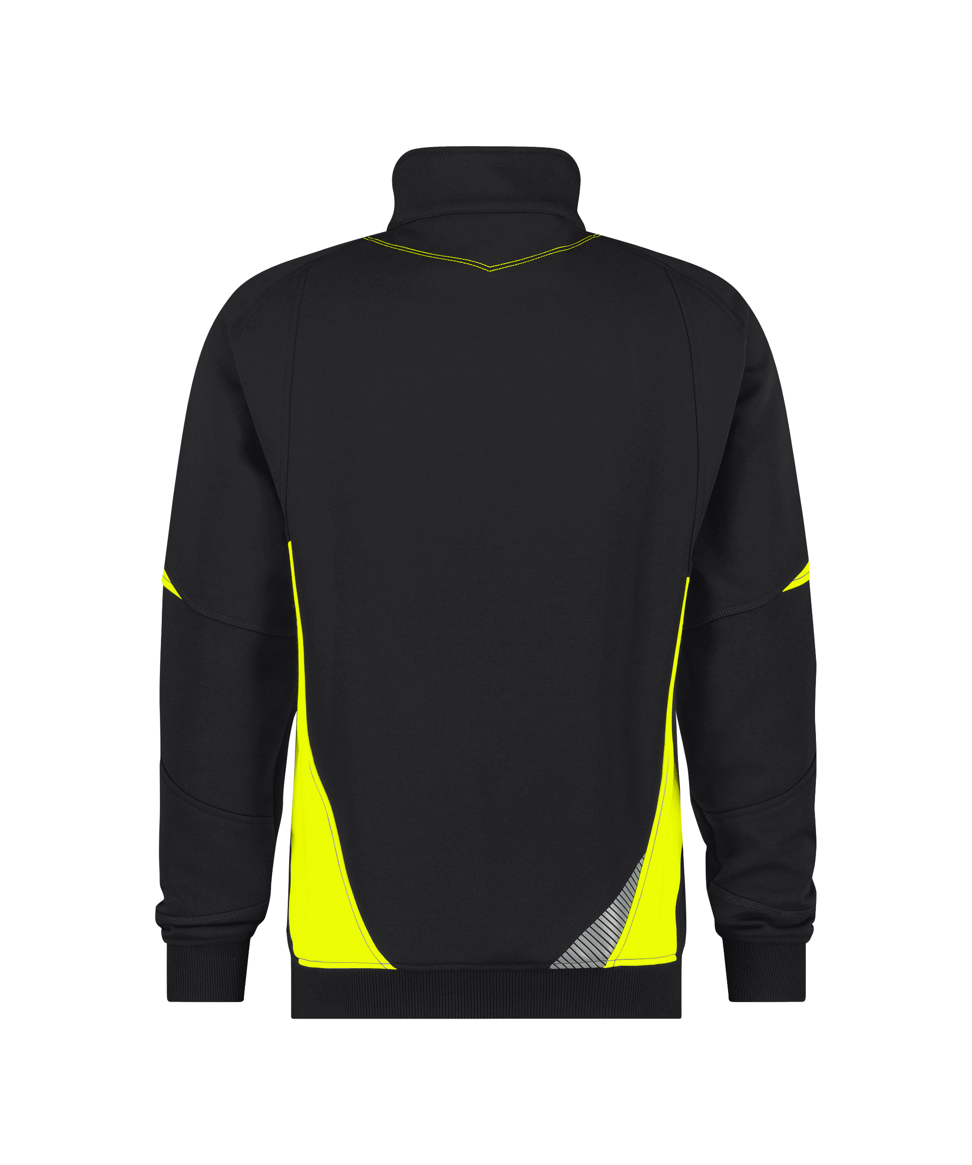65% katoen/35% polyester, +/- 305 g/m², korte ritssluiting, kinbescherming bovenaan rits, verborgen veiligheidszak met ritssluiting, gebreide mouw- en heupboord, kangoeroezak, stiksels in contrastkleur, geschikt voor borduurwerk en bedrukking, gesegmenteerde reflecterende details, fluo bartacks.