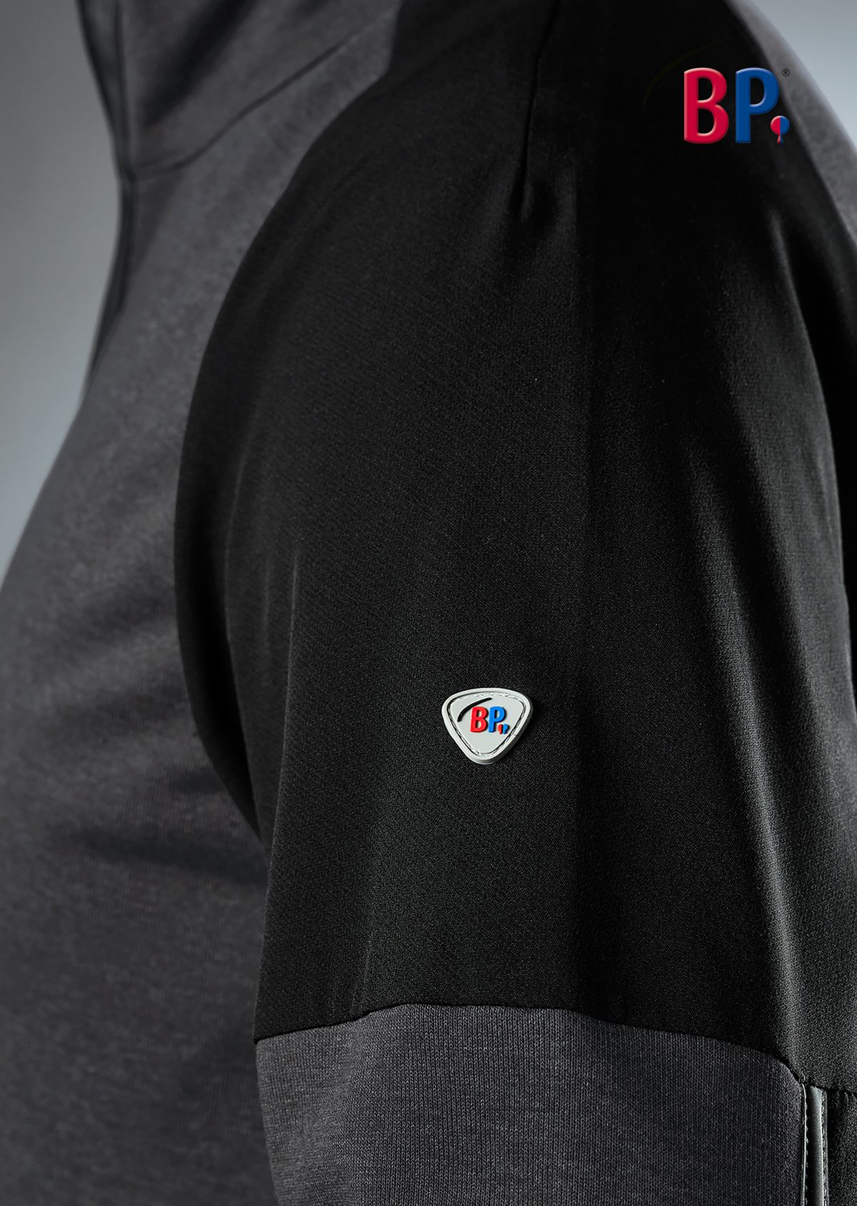 Lange mouw, hoge kraag, rits, kangoeroezakken, boordjes aan mouwen en zoom, lengte 70 cm. 320,00 g/m², versterkt katoen, 55% Katoen, 45% Polyester. hoge kraag. krimpt niet, blijft mooi in vorm en kookvast, kangaroezakken, normale pasvorm