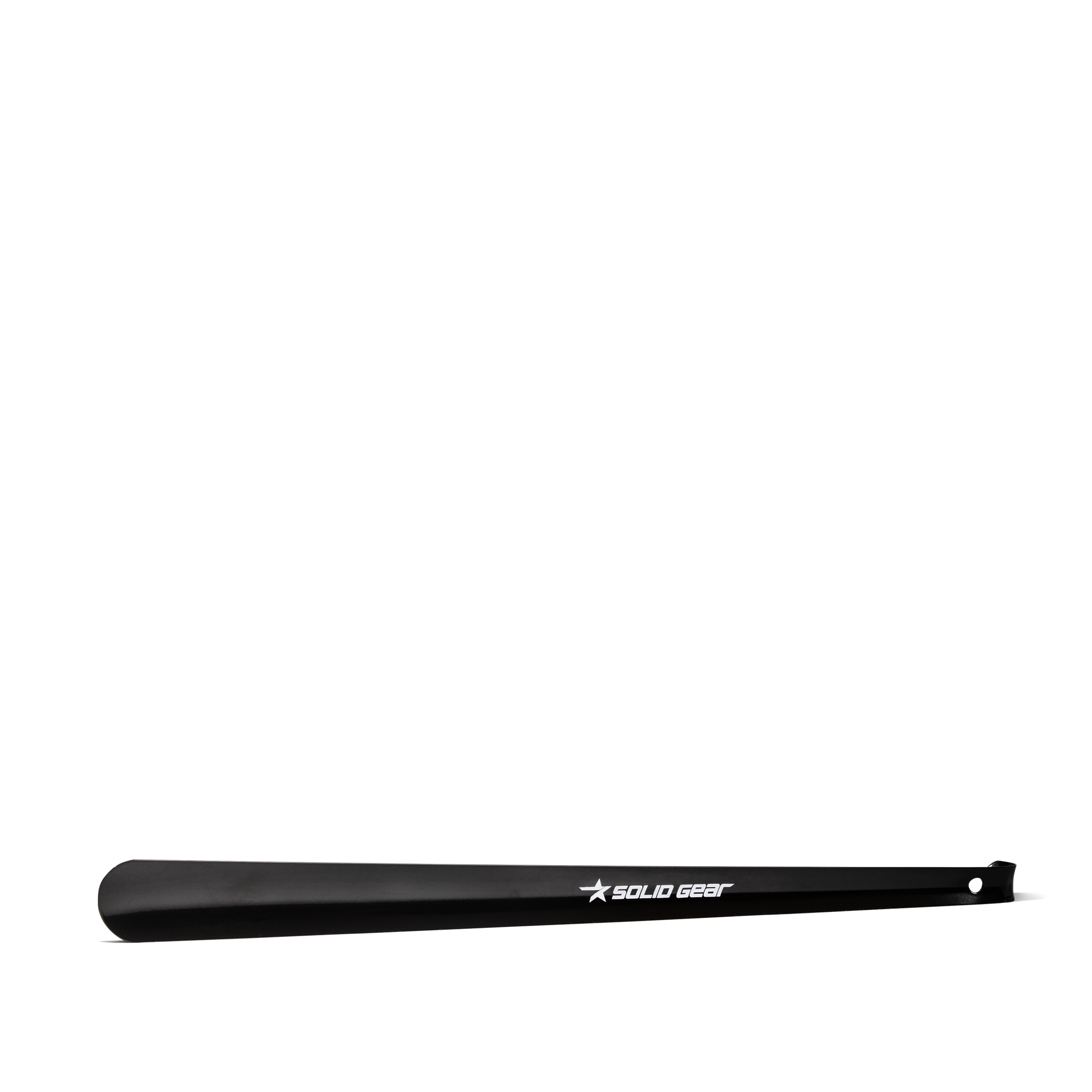 Zwarte schoenlepel van metaal met Solid Gear logo.