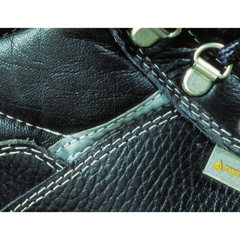 Robuuste hoge schoen gewijd aan de bouwwereld, met een bredere pasvorm en een robuuste constructie. Boven : Leder – Croupon – Gepigmenteerd – Waterafstotend | Voering : Textiel – Polyamide | Binnenzool : EVA – Polyamide | Zool : Geïnjecteerd – PU – 2d | Versterkingen : PU | Perforatiebescherming : Roestvrij staal | Veiligheidsneus : Roestvrij staal | Vetersysteem : Veters | Gewicht : 736 gram per schoen Comfort: Stabilisatie van de voet tijdens het lopen. Schokabsorptie in de hiel om de gewrichten te ontlasten. Brede vorm om zich aan te passen aan vrij sterke voetmorfologieën. Buitenzool met dubbele dichtheid. Gevoerde kraag voor comfort en ondersteuning van de enkel | Prestaties: Grote stabiliteit door de gripeigenschappen van de zool EN ISO : EN ISO 20345:2011|EN ISO 20345:2022. S3 – WPA – FO – A – E – SR