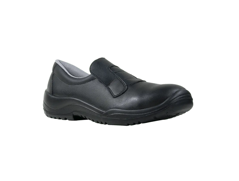 Mocassin met microvezel bovenwerk, PU mono-geïnjecteerde antistatische loopzool, composiet neus. Verkrijgbaar in wit en zwart. Zelfs na een hele dag werken in de keuken bent u verzekerd van rustgevende voeten.