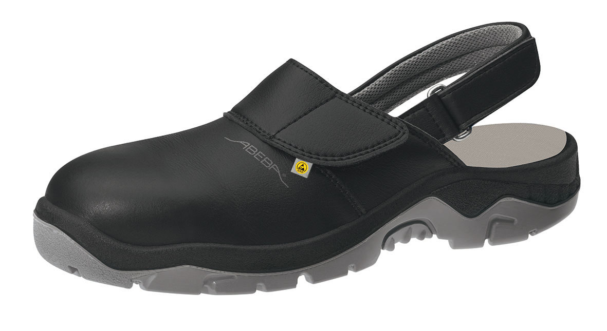 SB klomp wit ESD gespsluiting, hielband niet-inklapbaar, verstelbaar, klimaatklasse I, SB, verstelbare wreef, ESD afgeleidend volgens DIN EN 61340, geschikt voor keukens, voering microfiber, ademend vochtabsorberend