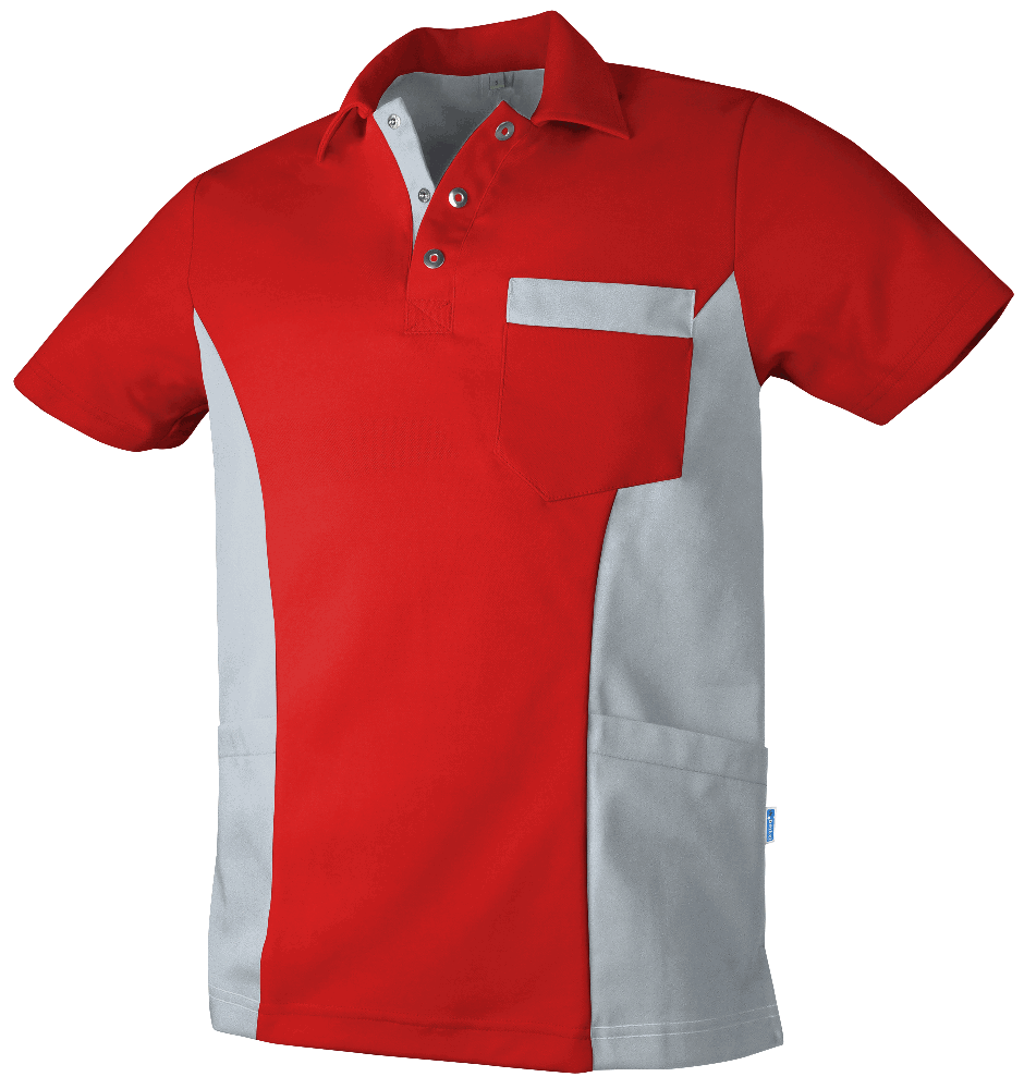 1/2 mouw, maximale bewegingsvrijheid door piqué-inzetstukken, hals van T-shirtstof met drukknopenlijst, 2 ruime zijzakken waarvan 1 met pieperzak, lus voor naambordje. 180,00 g/m², sterk gemengd weefsel, 50% Katoen, 50% Polyester. maximale bewegingsvrijheid door piqué-inzetstukken. lus voor naambordje, moderne washed-out look met kleurcontrast, modern fit